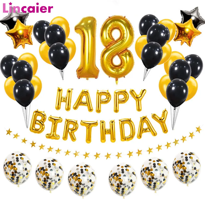 Воздушный шар из фольги с цифрами 18, украшение для вечеринки в честь Дня Рождения, для 18-летнего человека, для мужчин и женщин, 81, 1-е золото, черный декор, принадлежности для юбилея