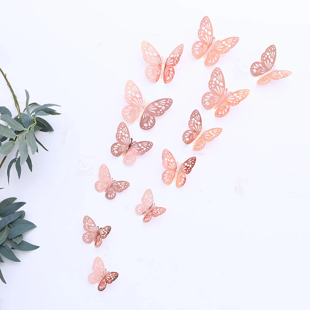 12 шт. текстурные наклейки на стену в виде бабочки, полый фон для комнаты, украшение на стену сделай сам для свадьбы, Дня Святого Валентина
