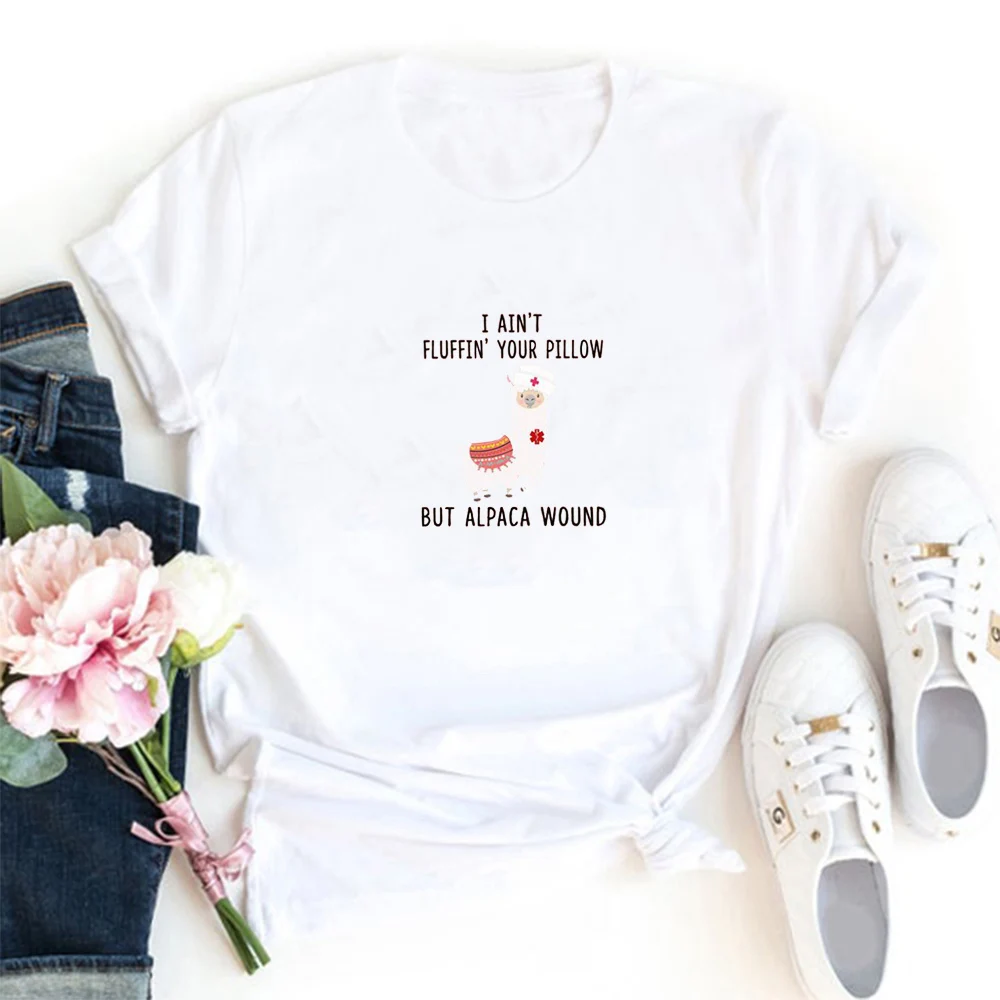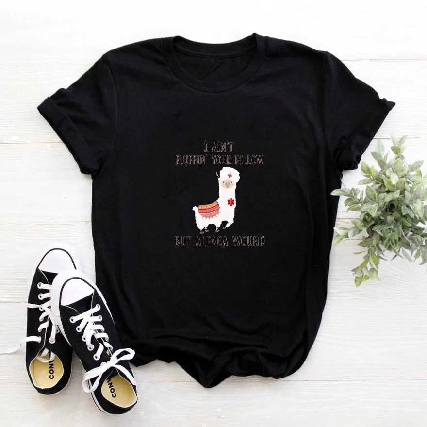 Женская хлопковая футболка с надписью I'm't fluffin Your Pillow, But Alpaca Зверюшка, Женская Футболка Harajuku, женская футболка с круглым вырезом