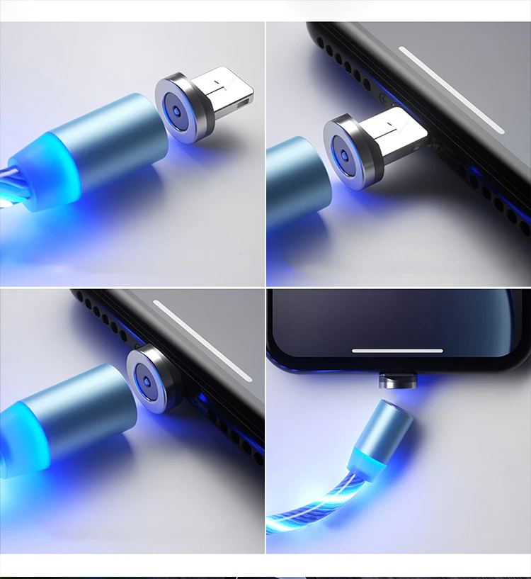 1 м Магнитный кабель струящийся Свет USB кабель со светодиодной подсветкой, Кабель зарядного устройства для iPhone зарядное устройство usb кабель для передачи данных c кабель Мобильный телефон Аксессуары