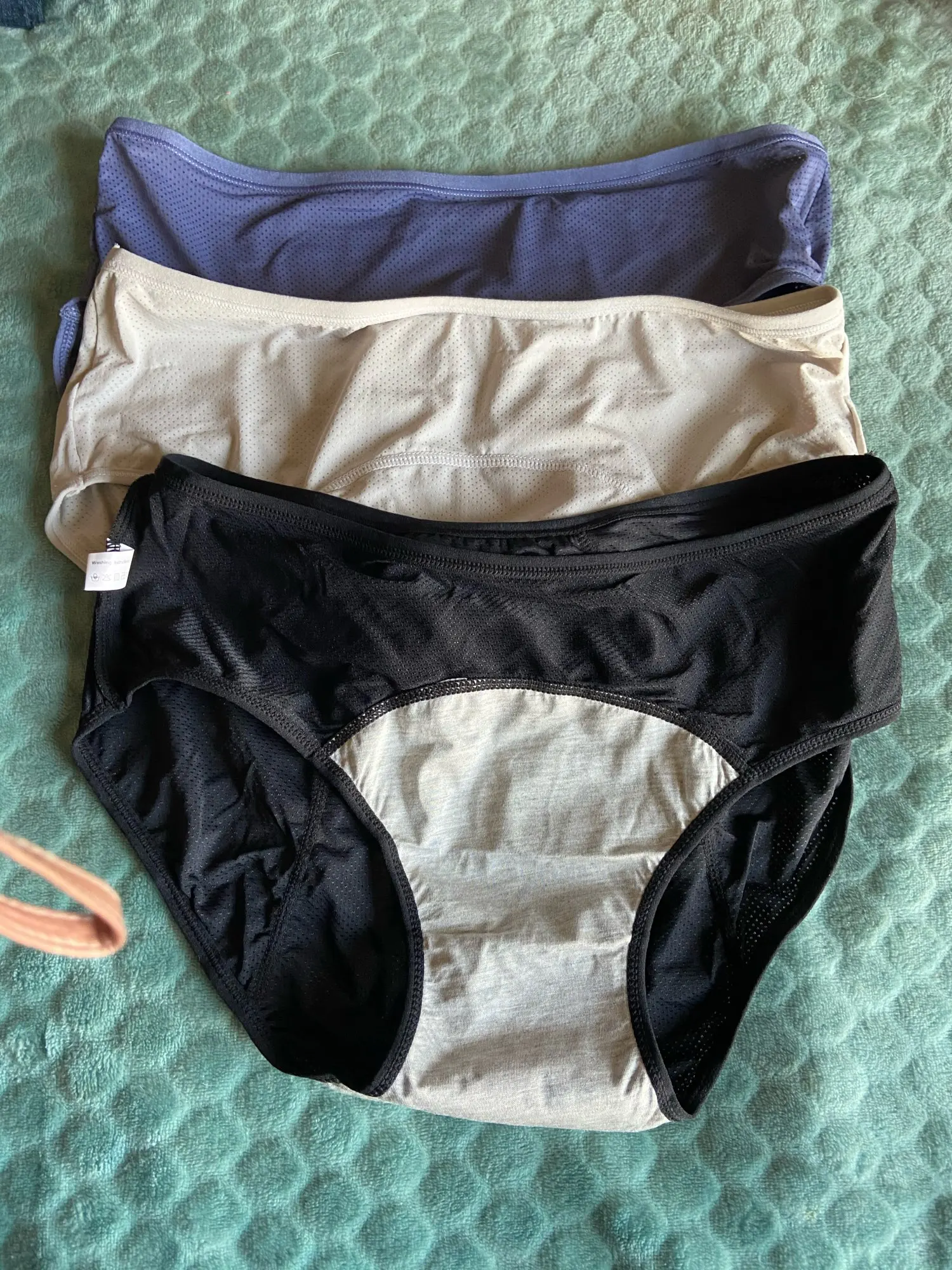 Трусики грамотно сделаны. Где необходимо уплотнения в остальных местах ткань сетчатая ( но не сетка). На ощупь ткань очень приятная , шелковистой маленькая. Думаю в носке будут комфортные..С размерон немного не угадала ,на размер 56-58 заказала 6 немного свободные получились , но не критично ,в следующий раз закажу 5. Как поведут себя в деле напишу позже.