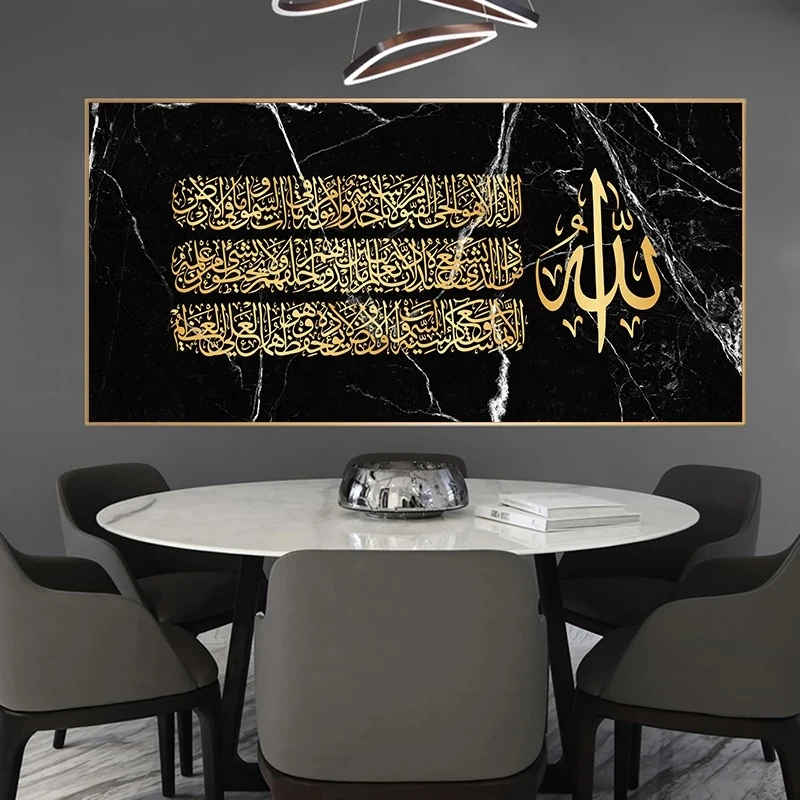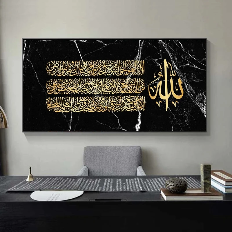 Черный Мрамор фон золотые исламские арабский Коран Каллиграфия плакат и принты картины на холсте для мусульманских домашний декор