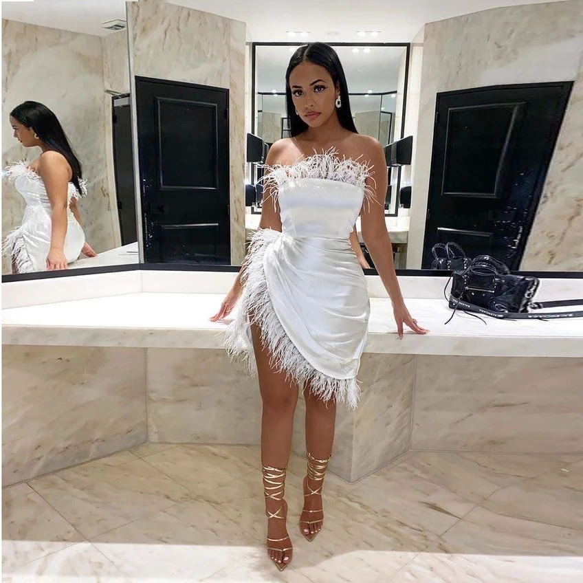 2020 короткое платье-футляр с перьями, сексуальное женское платье с...