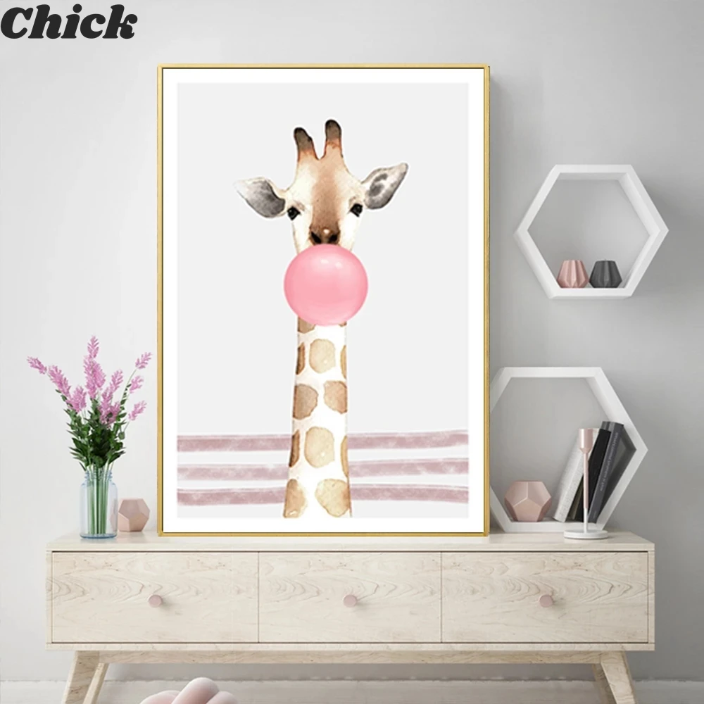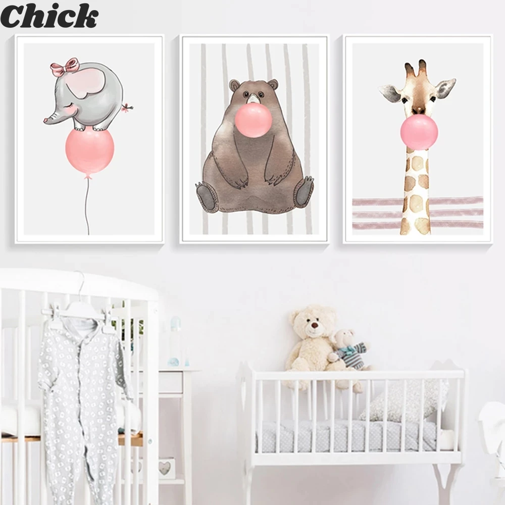 Картина из мультфильма, искусственный слон, медведь, жираф, жевательная резинка, холст, картина, плакат, украшение детской комнаты