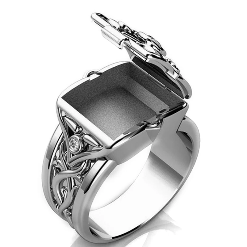 Креативное винтажное серебряное кольцо с цирконом для женщин и мужчин, модное маленькое кольцо в стиле панк с секретом для спальни, гроба, ювелирные изделия, подарок