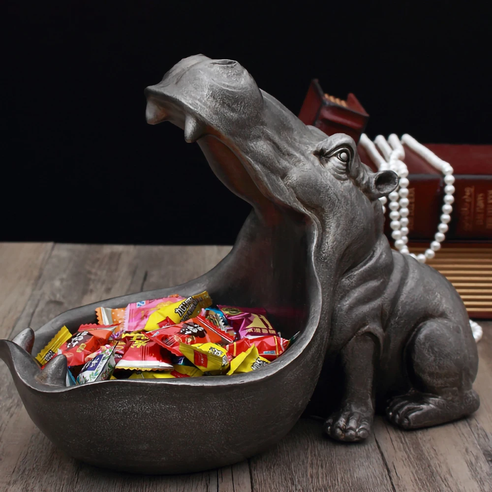 Статуэтка в виде бегемота с большим горлышком, контейнер для конфет, Статуэтка из смолы, статуэтка, настольные украшения, посуда для украшения дома, аксессуары