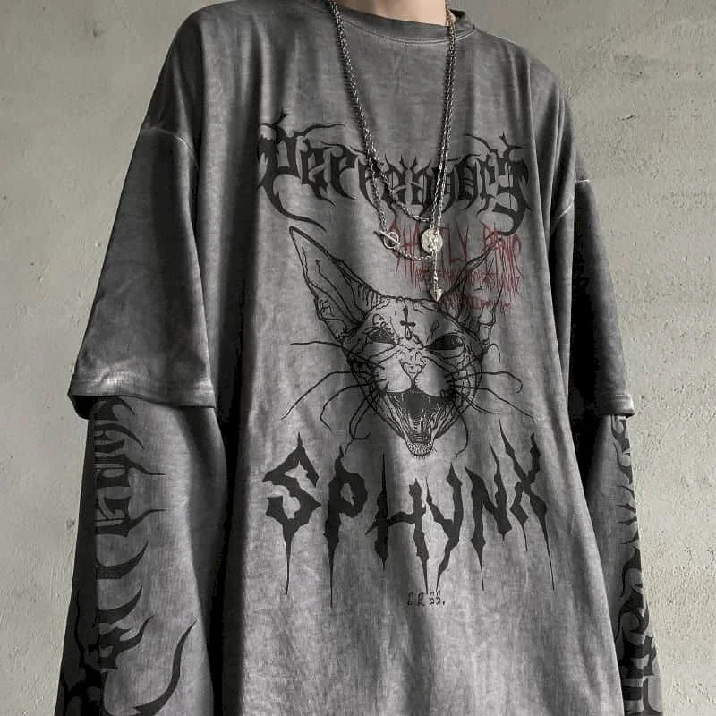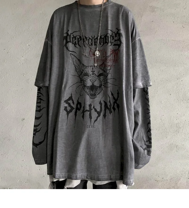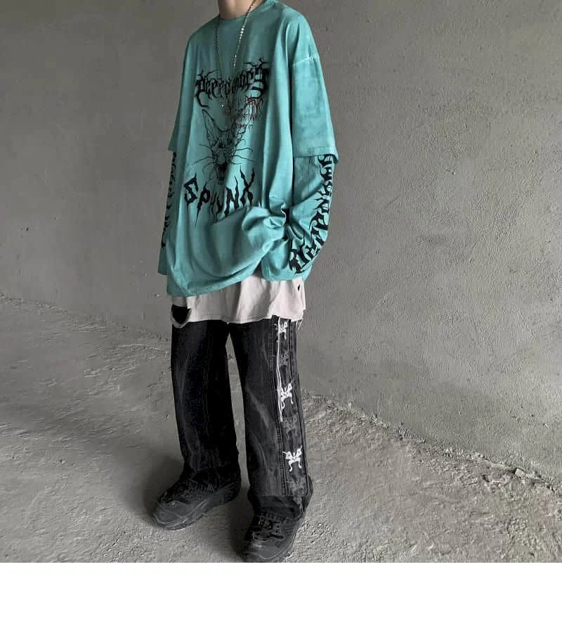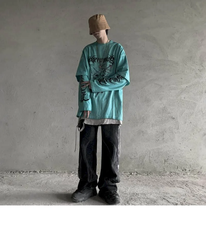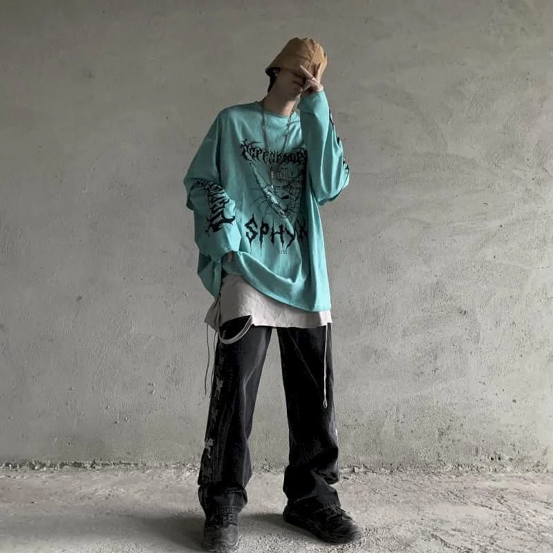 Футболка с длинными рукавами, в стиле Харадзюку, свободные универса...