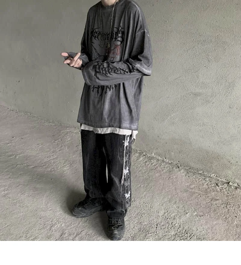 Футболка мужская оверсайз в стиле Хай-стрит, Готическая Темно-Черна...