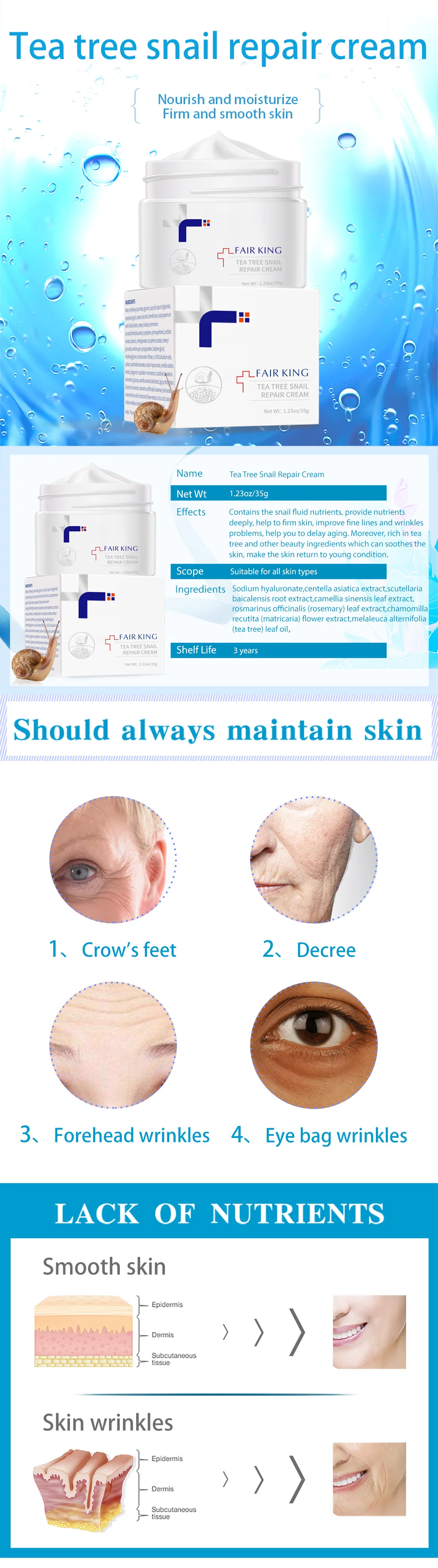 Мягкая и гладкая текстура, влажная, но не жирная, нежная мазня, образует слой воды, блокируя увлажняющую пленку на поверхности кожи, содержит эссенцию чайного дерева, вода успокаивает, питание улитки помогает восстанавливать красоту мышц, смешайте с другими экстрактами питательных ингредиентов, облегчайте сухость кожи, грубые и другие проблемы, Делает кожу мягкой и эластичной, наполненной блеском.