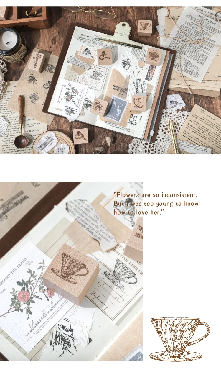 Деревянные и резиновые штампы для девочек, с принтом кролика; Кофе цветочные узоры темно-синего цвета марки набор для самостоятельного изготовления карты принадлежности для скрапбукинга
