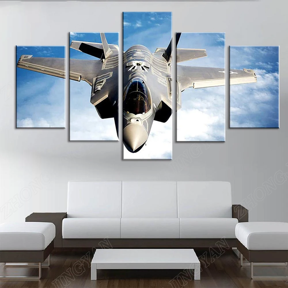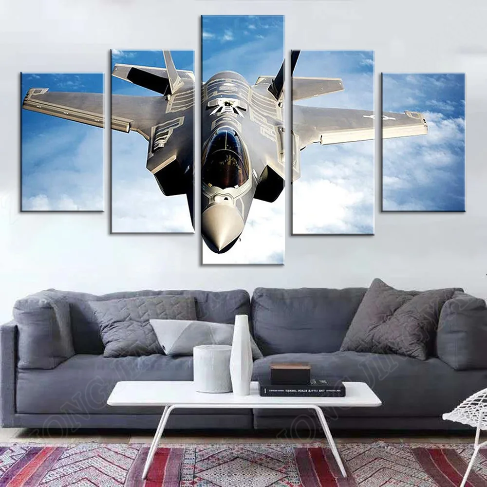 F35 истребитель aircraOil картина 5 панелей на холсте плакаты и принты Декоративная Настенная картина для гостиной мальчика спальни Wal