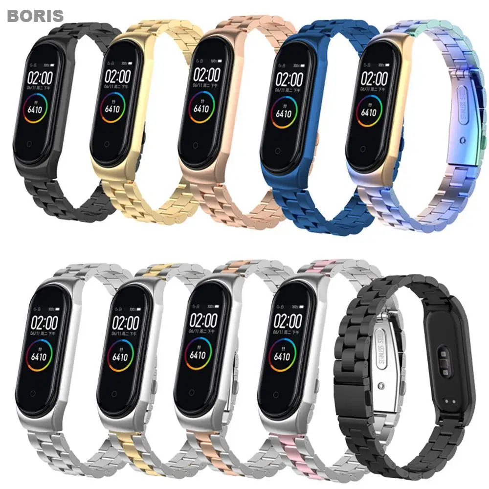 Металлический ремешок для Xiaomi Mi Band 4 3 5, сменный Браслет из нержавеющей стали без винтов