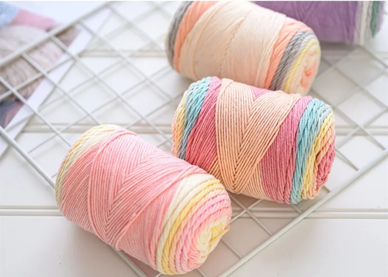 100 гшар радужного цвета хлопчатобумажная пряжа ручной работы мягка...