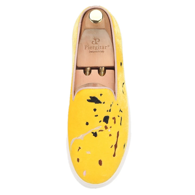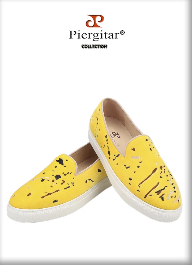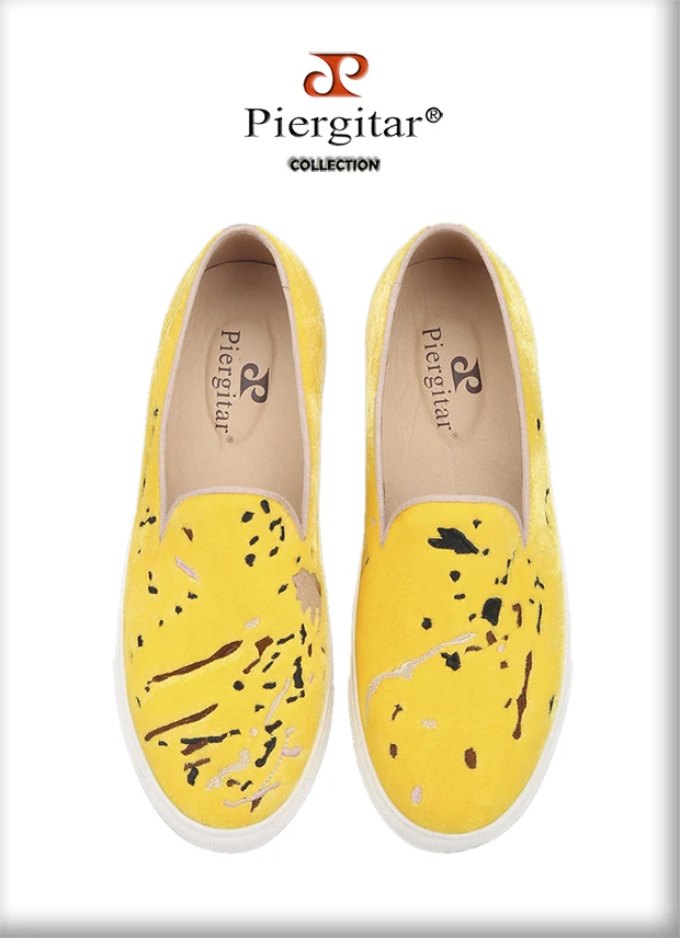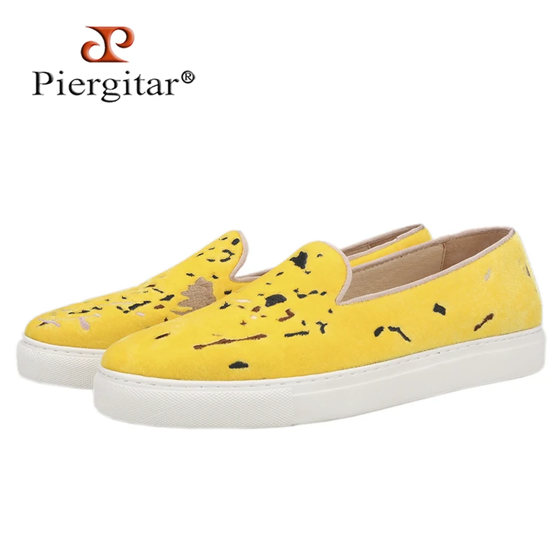 Роскошные бархатные мужские кроссовки Piergitar, мужская повседневная обувь ручной работы в спортивном стиле с вышивкой, кожаная стелька на белой резиновой подошве