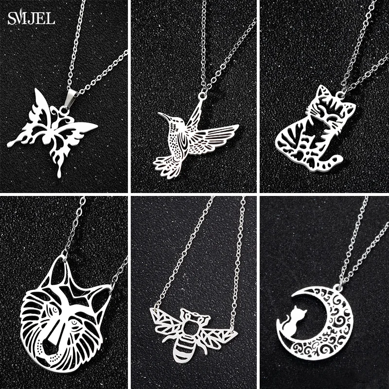 Мультфильм из нержавеющей стали ожерелья в виде животных для женщин Милые Колибри кролик, Бабочка, подвеска, колье, ювелирные изделия в виде пчелы подарки