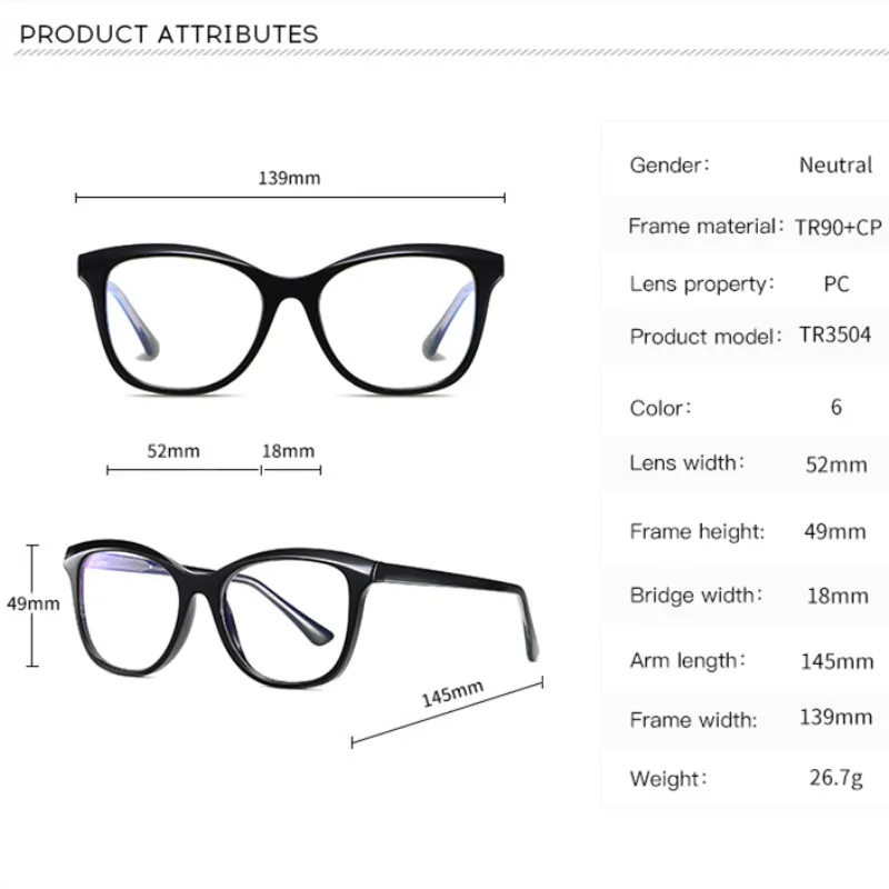 Очки TR90 кошачий глаз с блокировкой синего света, прозрачные компь...