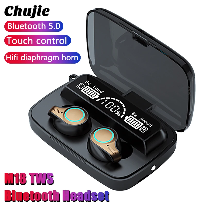 Беспроводные Bluetooth наушники M18 TWS с сенсорной зарядкой и датчиком отпечатков пальцев, водонепроницаемая hi-fi стереогарнитура для Iphone, Huawei, Xiaomi, Спортивная гарнитура