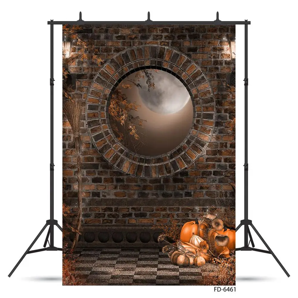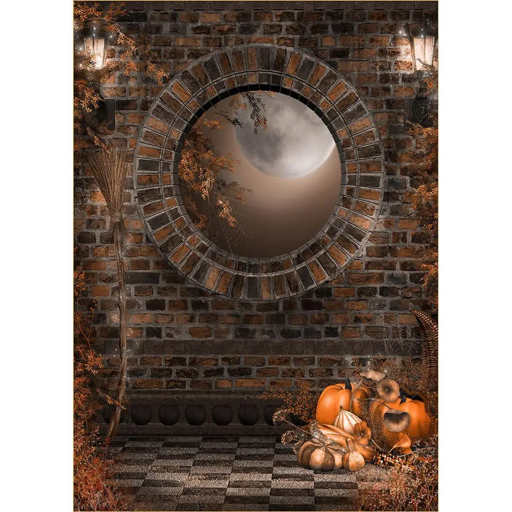 Фон для детских фотографивечерние с изображением кирпичной стены Луны тыквы