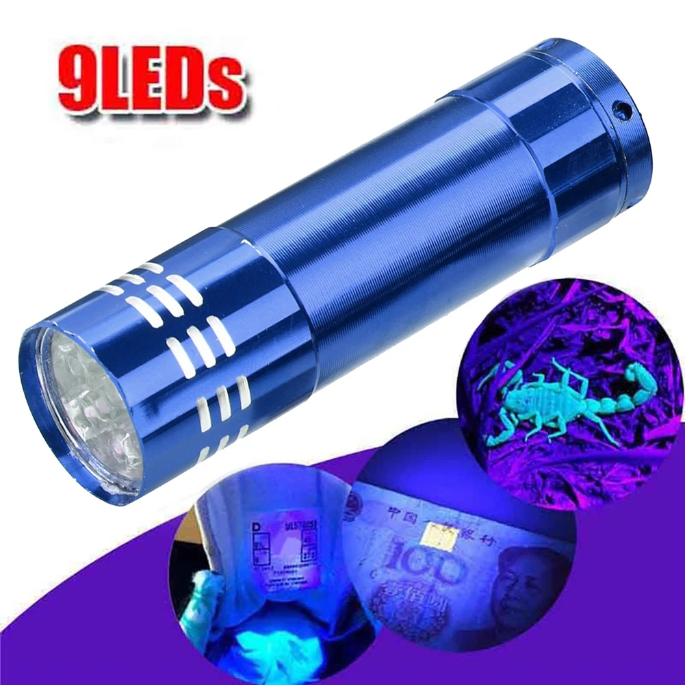 УФ-светильник фонарь лампа супер мини 9 LED флэш-светильник черный ультрафиолетовый светильник супер мини алюминиевый УФ-светильник фонарь лампа Спецификация: Это Ультрафиолетовый светодиодный фонарик с 9 светодиодный лампы. Благодаря алюминиевому корпусу светильник весит и переносится. Он идеально подходит для кемпинга, улицы, дома и многих других целей. Конструкция водонепроницаемости предназначена для использования в дождливые дни. Идеально подходит для: Яичко для вшей или устройство для обнаружения вшей. Обнаружение ошибок в кровати. Проверка ультрафиолетовых чернил в валютах и ID. Активация флуоресцентных чернил/красителей, используемых в качестве мер по борьбе с подделкой. Проверка марок рук в клубах. Изучение художественных работ и работы со стеклом для скрытого ремонта. Отсканируйте место происшествия для посторонних материалов. Найти скорпионов во дворе, доме или пустыне. Отверждения УФ-клея, освещает флуоресцентные минералы. Тип: светодиодный ультрафиолетовый фонарик Светильник лампочка Тип: UV светильник Операционной Напряжение: 4,5 V Светодиодный индикатор: 9 Тип батареи: 3 щелочных аккумулятора AAA (не входят в комплект) Примечание: благодаря светильник и экрана Цвет Товара может быть s светильник ly отличается из-за характеристик монитора компьютера. Посылка включает в себя: 1x светодиодный ультрафиолетовый фонарик