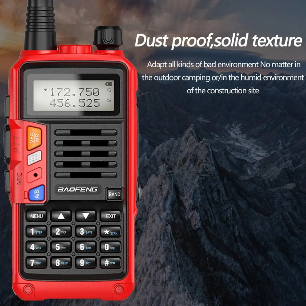 4. Литий-ионный аккумулятор большой емкости, оснащенный литий-ионным аккумулятором 2800 мАч. UV-S9 Plus Tri-band-это легкий и удобный светильник. Просто нажмите кнопку PTT для разговора: даже ночью, переключая Встроенный светодиодный светильник вспышки и встроенный VOX Функция громкой связи.