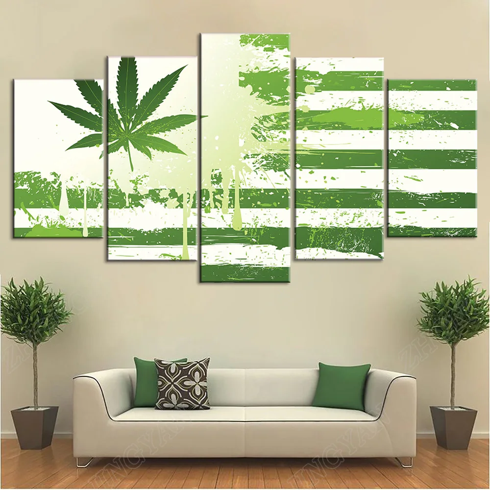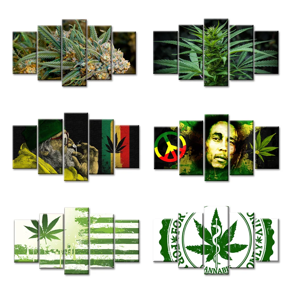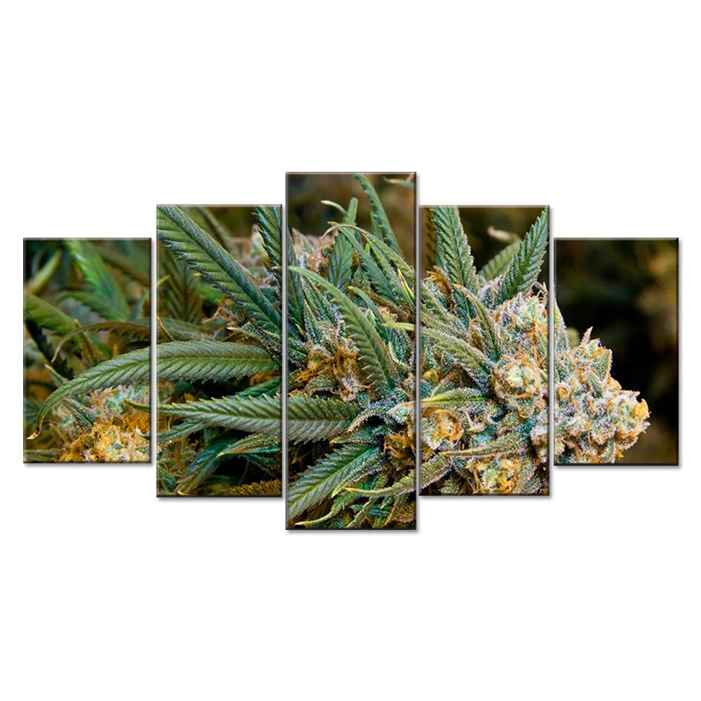 5 шт. холст из клена с зелеными листьями искусство HD Печать зеленые растения травы плакаты Настенная картина для гостиной интерьер модульная домашняя Декорация