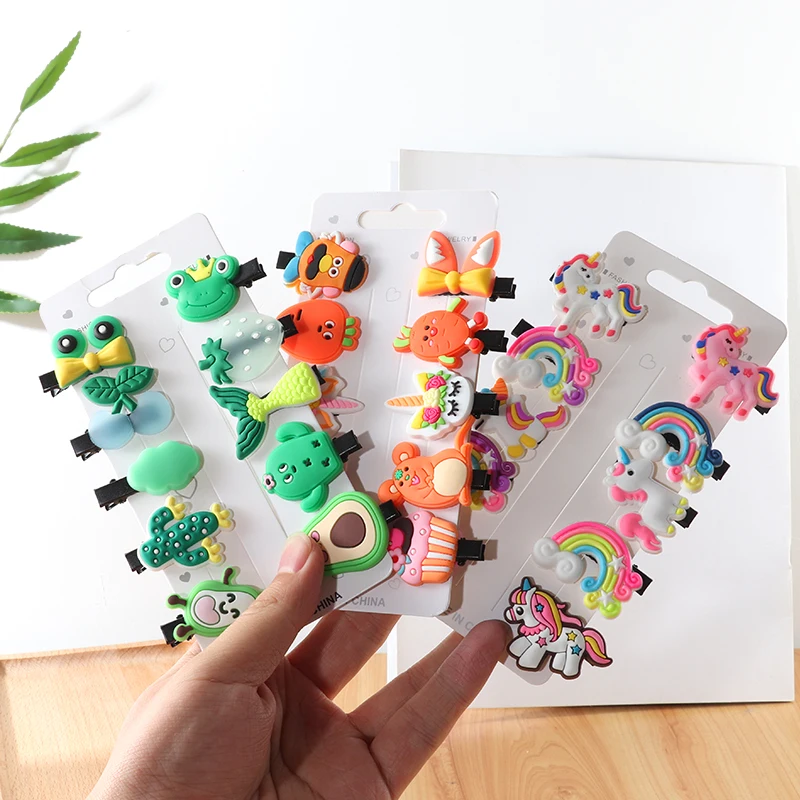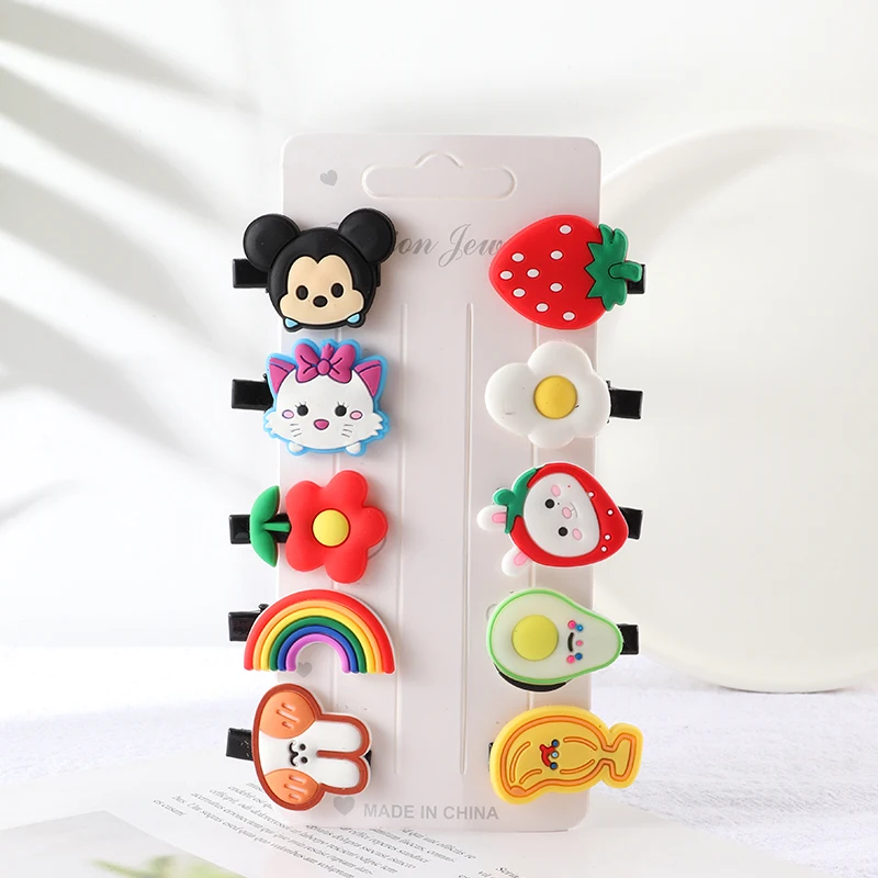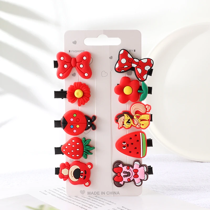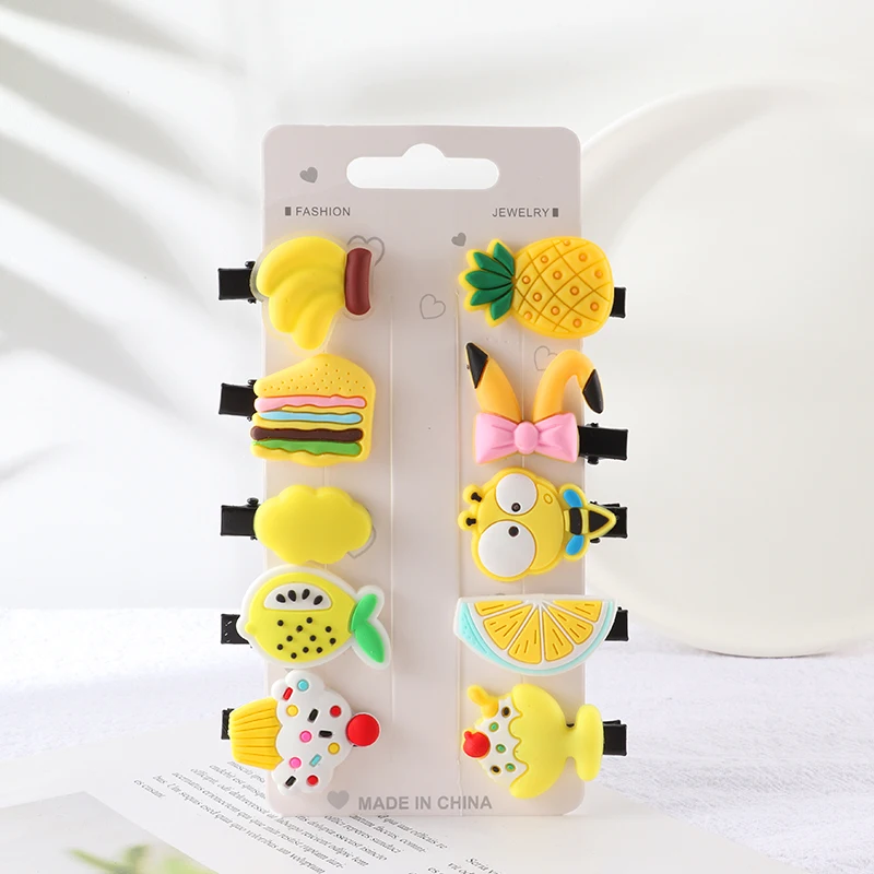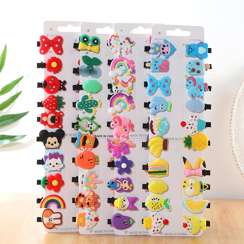 Набор заколок для волос для девочек, 10 шт., милые резинки для волос s, аксессуары для волос с бантом и цветком, повязка с фруктами на голову заколки для волос с героями мультфильмов, заколка для волос, головной убор