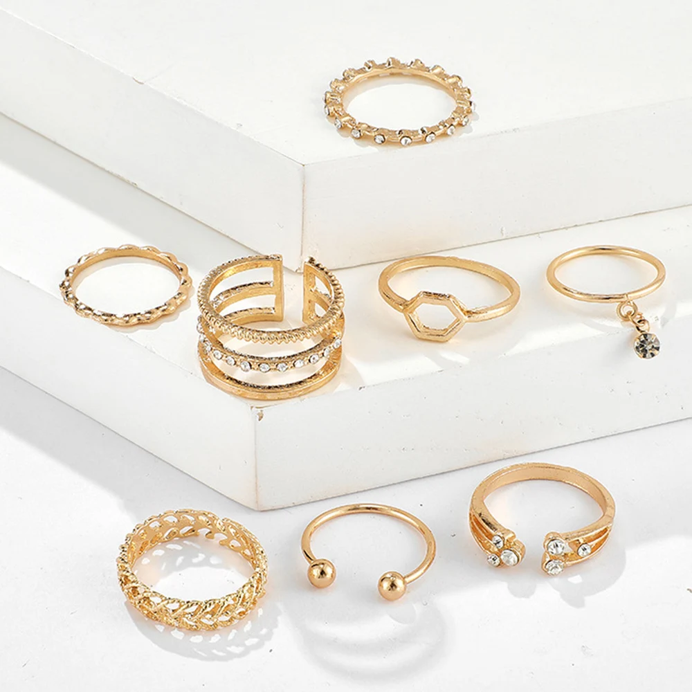 Starose 8 шт./компл. Подвески капельки в виде кристаллов из камней по открытые, кольца на палец комплект с геометрическим рисунком уплотнительное кольцо сустав большого пальца ноги кольца для Для женщин манжеты подарочные украшения для ушей