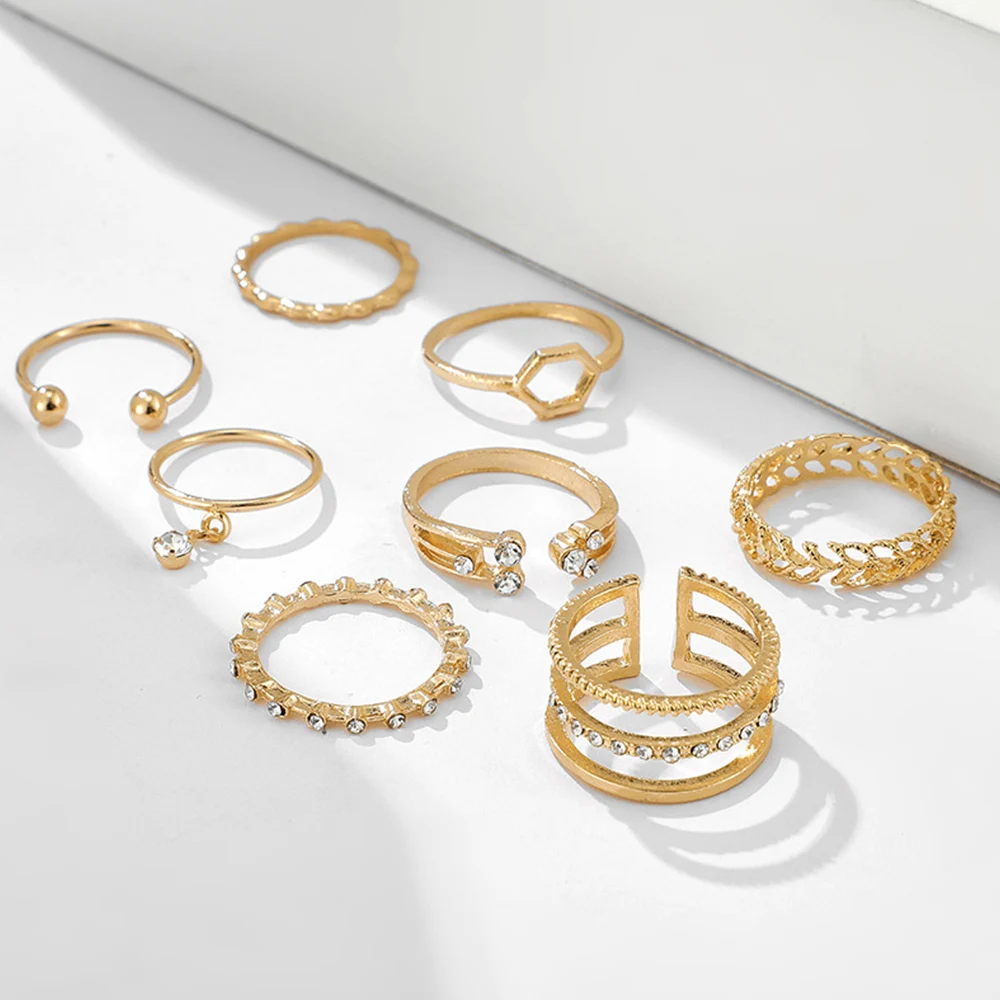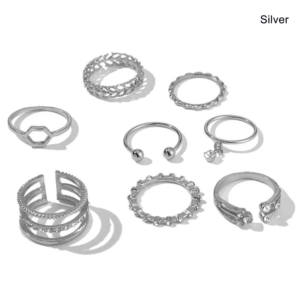 Набор женских колец Starose, 8 шт., с кристаллами, с подвеской-открытые, кольца на палец, геометрическое соединение, сустав большого пальца ноги кольца для женщин, манжеты, подарочные украшения для ушей