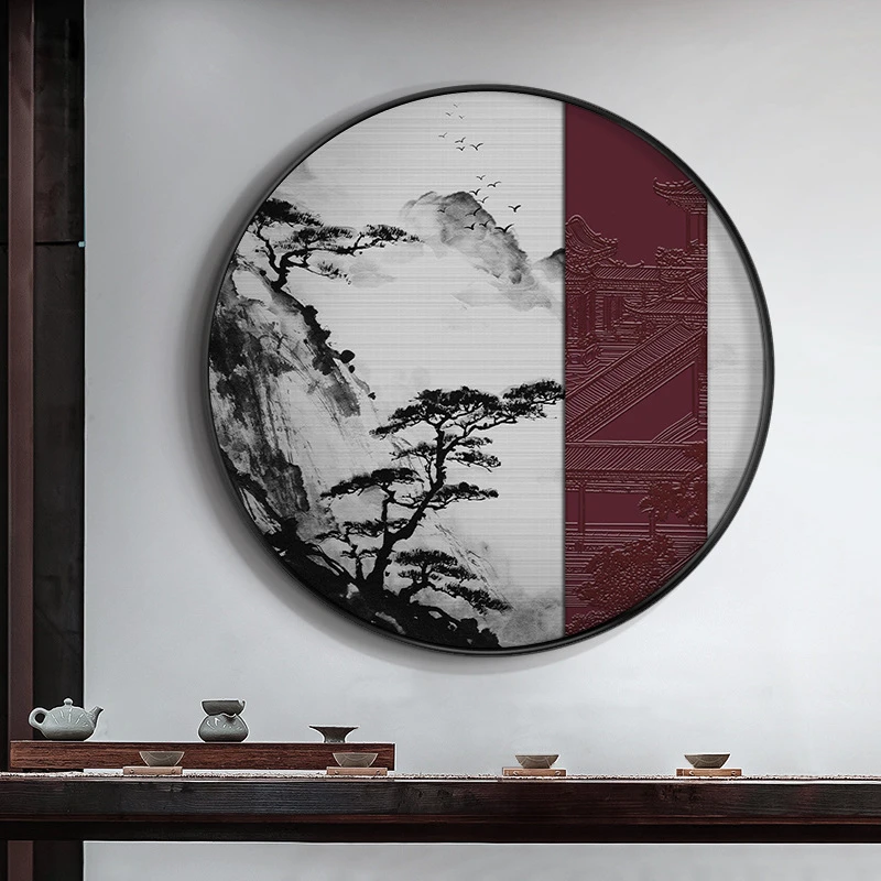 Китайский стиль пейзаж горы реки птицы современный скандинавский ст...