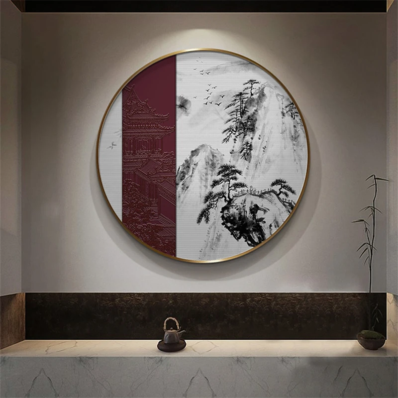 Абстрактный Традиционный китайский пейзаж, настенное искусство, кар...