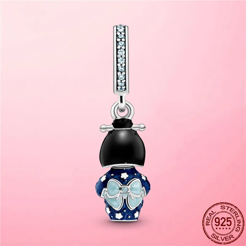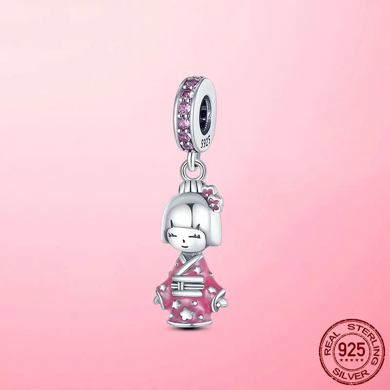 Шармы для путешествий, серебряный цвет, японская кукла в синем кимоно, подвески-шармы, бусины, подходят для кулона, браслета Пандоры, ожерелье, ювелирные изделия