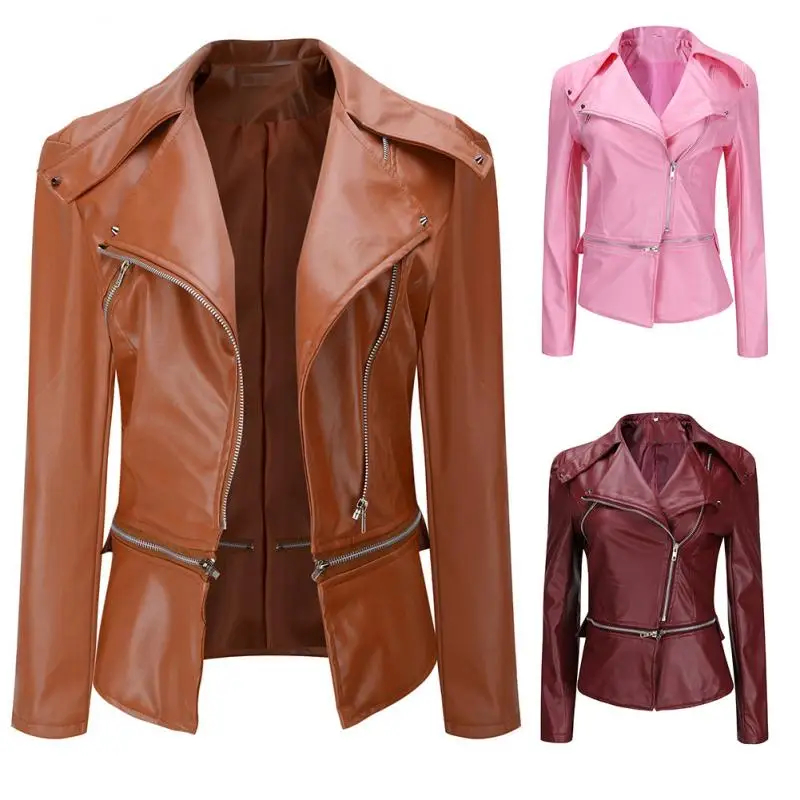 Женские осенние zipeer мягкая кожаная куртка с отложным воротником, повседневная обувь из Pu искусственной кожи в байкерском стиле черного цвета в стиле панк верхняя одежда