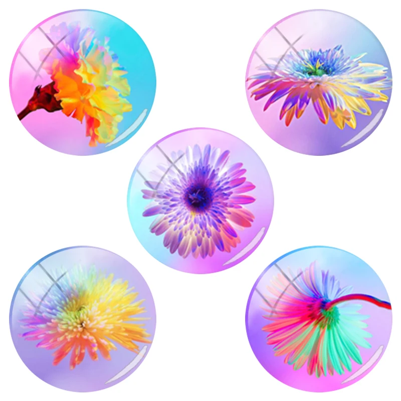 TitleColorful Flowers Round Glass Cabochon Jewelry Findings