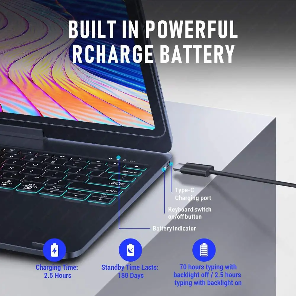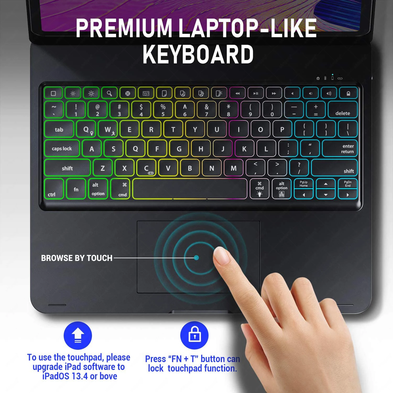 Волшебный чехол для тачпада с клавиатурой и мышью для iPad Pro 12,9, 2018, 2020, 2021, русская, Арабская, Корейская, Еврейская, испанская, португальская клавиатура