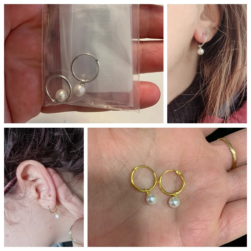 Их очень трудно надеть. Жемчужина очень легко выходит из серьги, у нее нет верха, чтобы она не упала на землю.