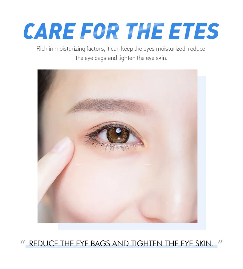 ▶Богатый увлажняющими факторами, он может увлажнить глаза, уменьшить мешки для глаз и подтянуть кожу глаз. Делает кожу вокруг глаз нежной и подтягивает кожу. 1. Уменьшает мешки для глаз и подтягивает кожу глаз 2. Уменьшает темные круги вокруг глаз 3. Осветляет кожу