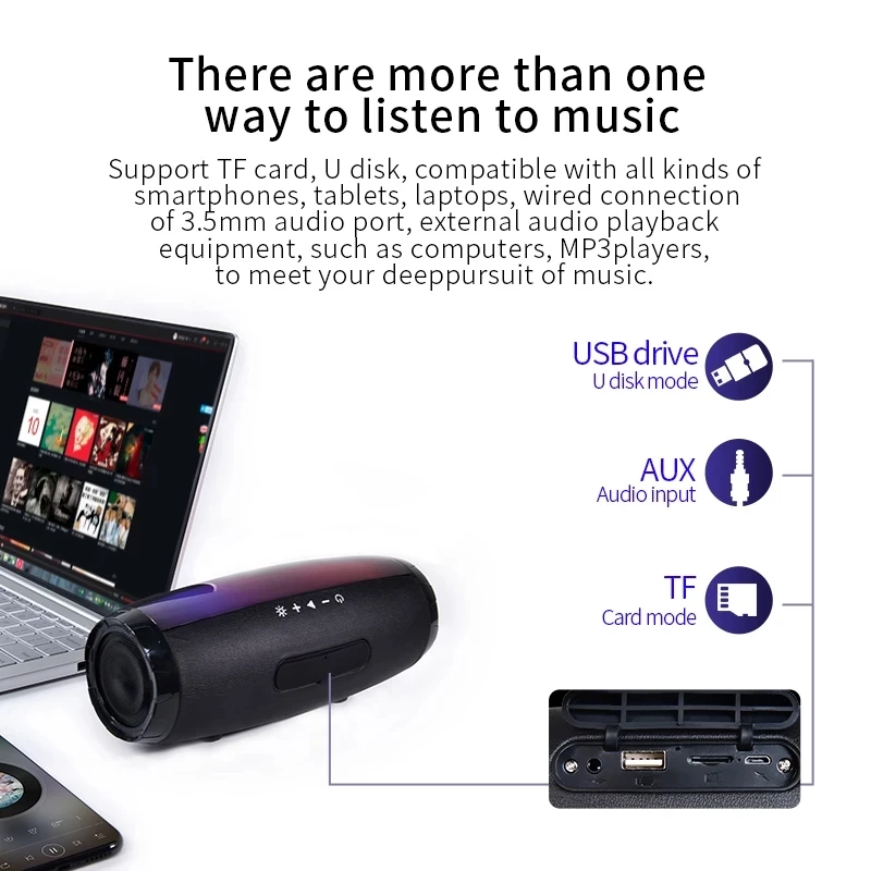 Портативная стереоколонка Bluetooth, беспроводная и водонепроницаемая басовая Колонка для использования на открытом воздухе, с сабвуфером, совместима с AUX, TF,