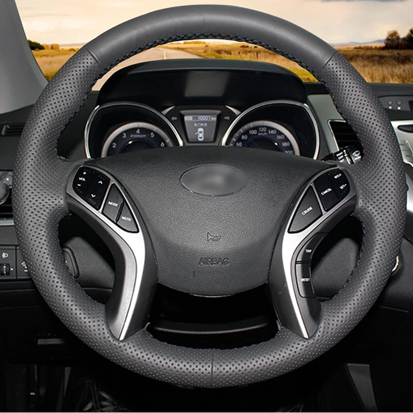 Рука сшитый черный искусственной кожи чехол рулевого колеса автомобиля для Hyundai i30 Elantra GT Elantra Coupe 2011 2012 2013-2017