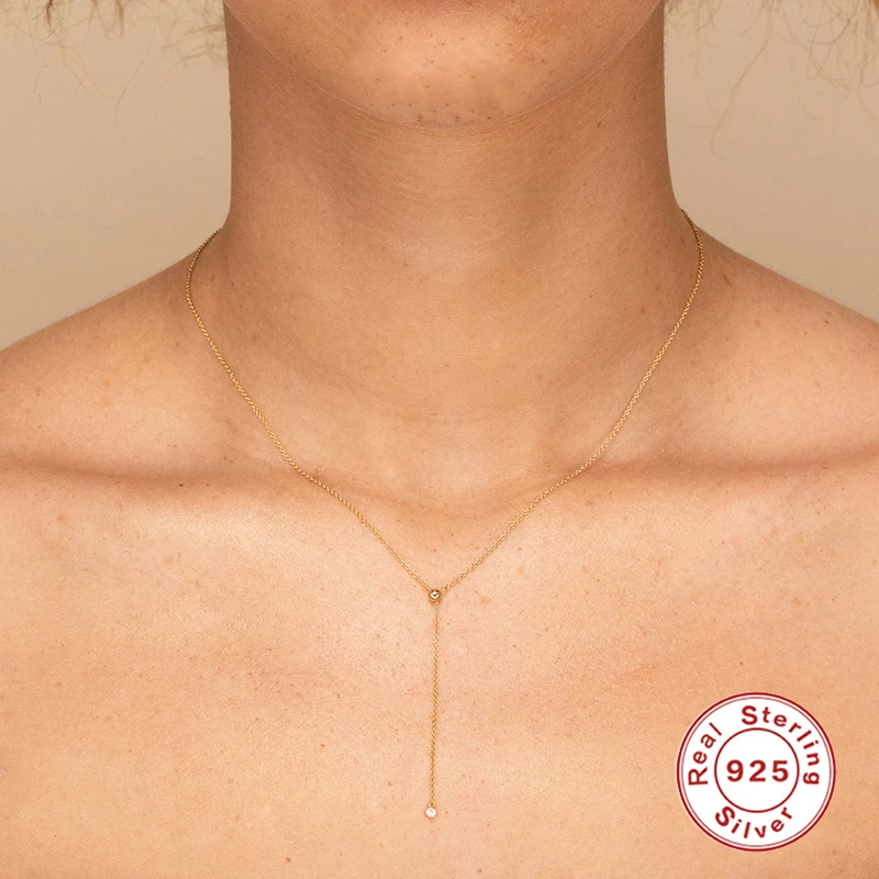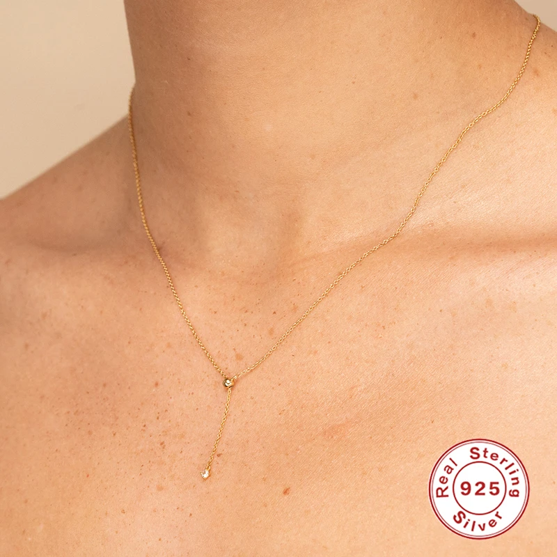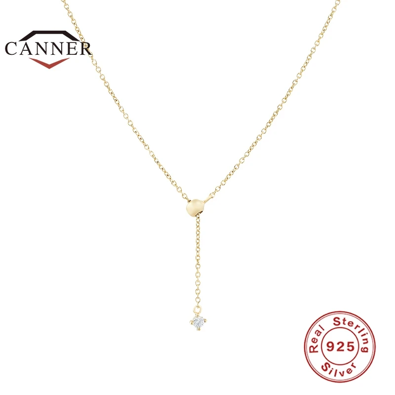 Женское Ожерелье до ключицы CANNER, из настоящего серебра 925 пробы с Y-образным цирконием, золотистого цвета, 2021