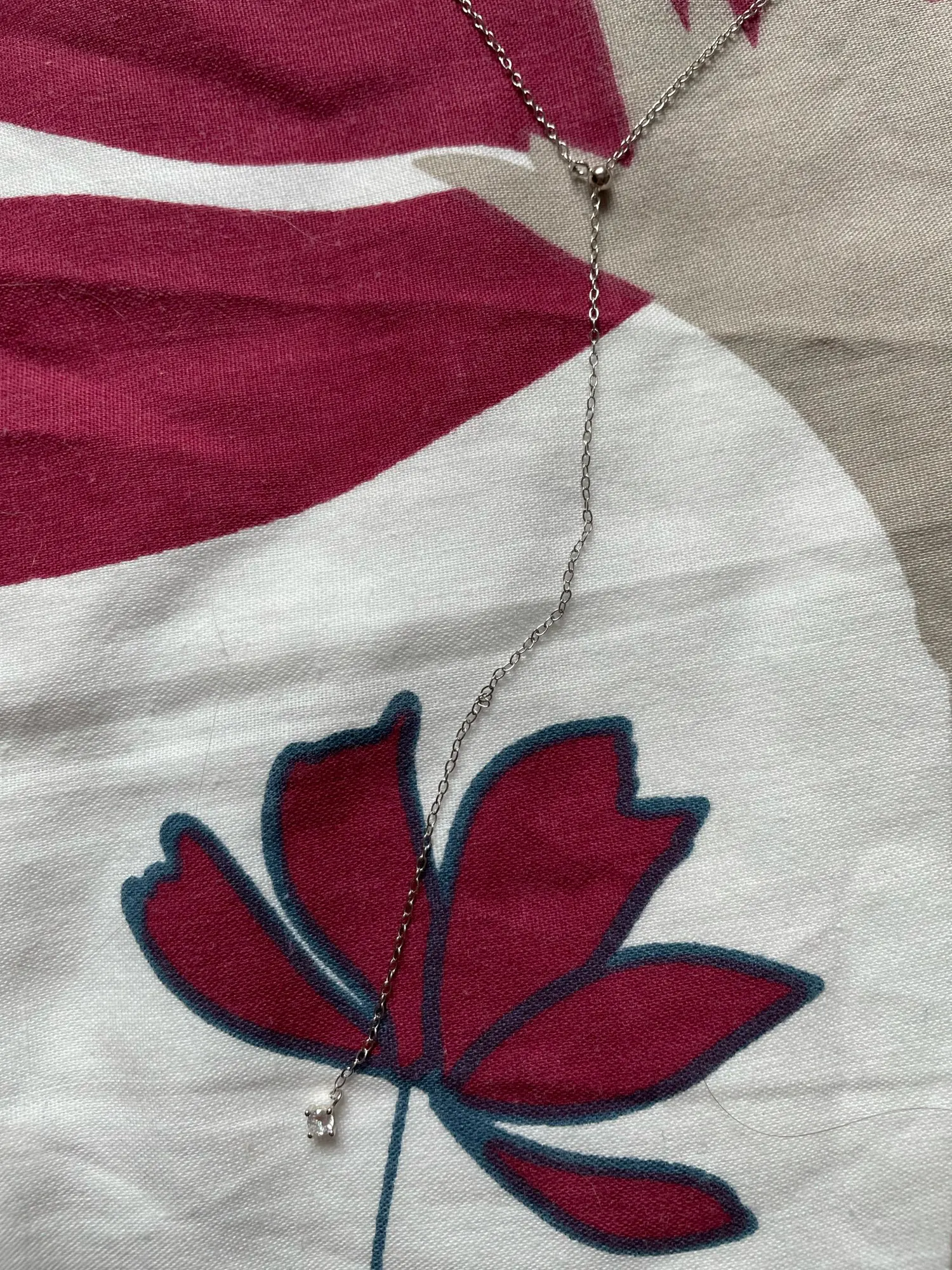 Это красиво, но чтобы вы могли видеть бриллианты, вы должны сильно приспособить его к шее. Если я оставлю его менее плотным, Он поворачивается и выглядит не очень хорошо.