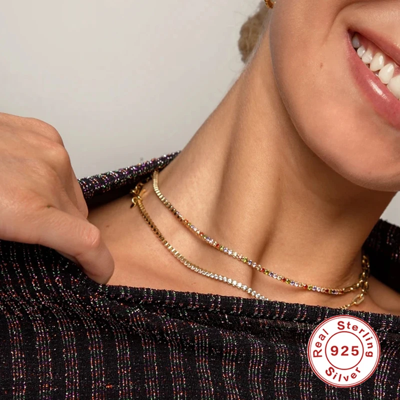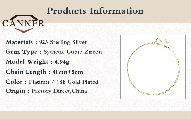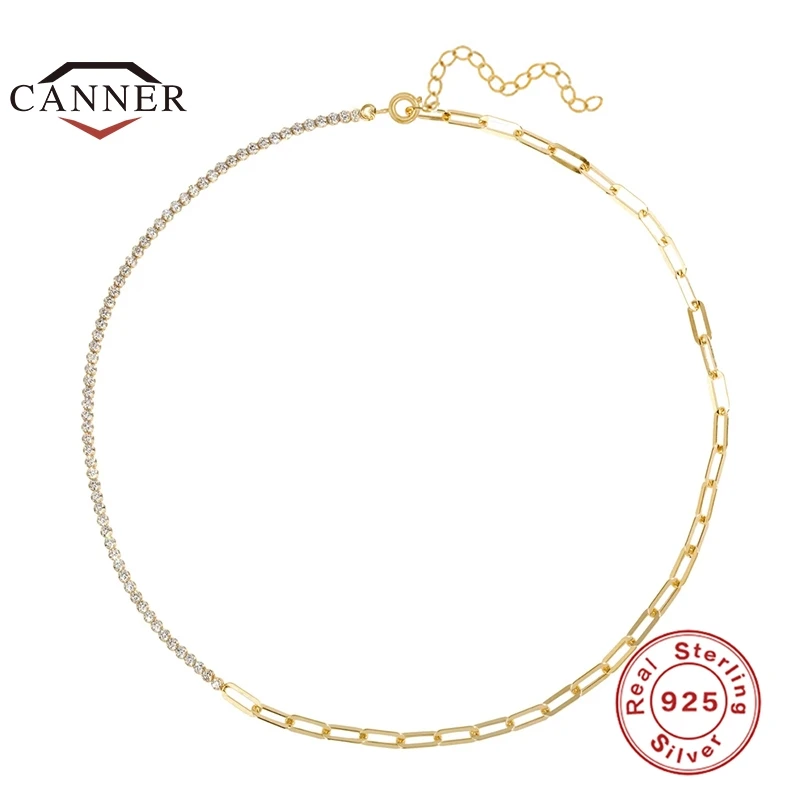 Женское Ожерелье CANNER из стерлингового серебра 925 пробы, с цирконом, сшитая Скрепка-Скрепка, изящное Ювелирное Украшение золотого цвета