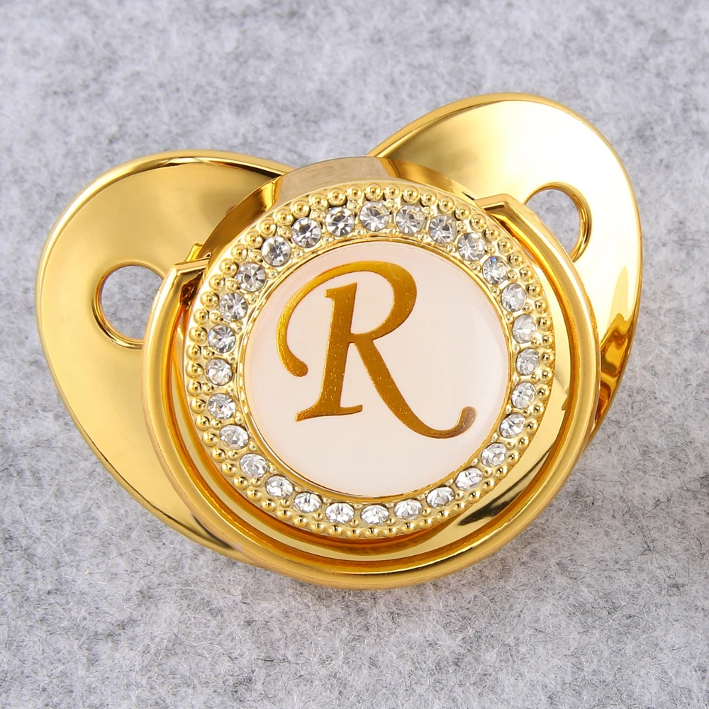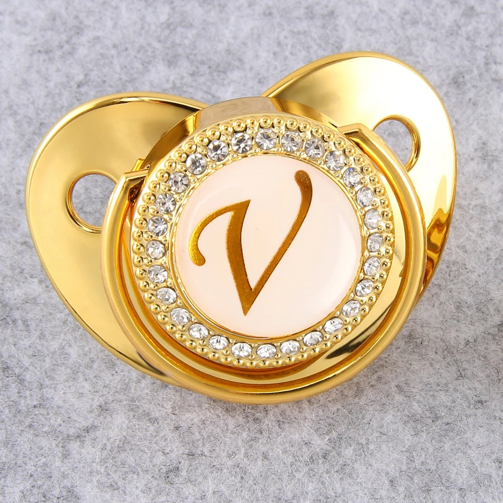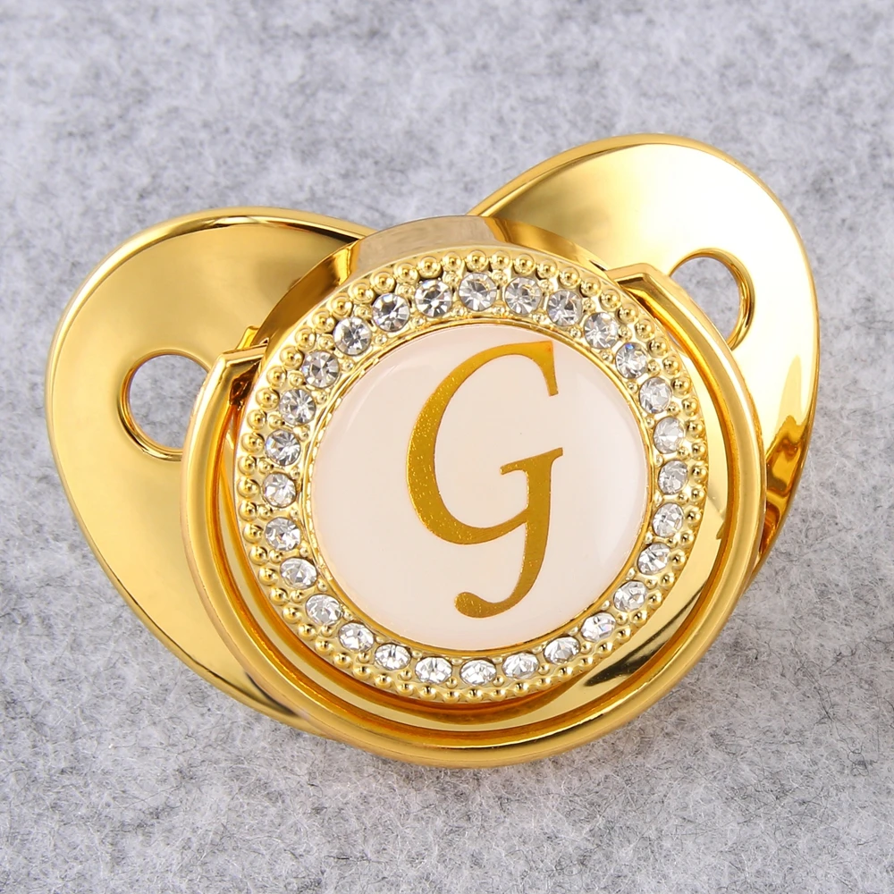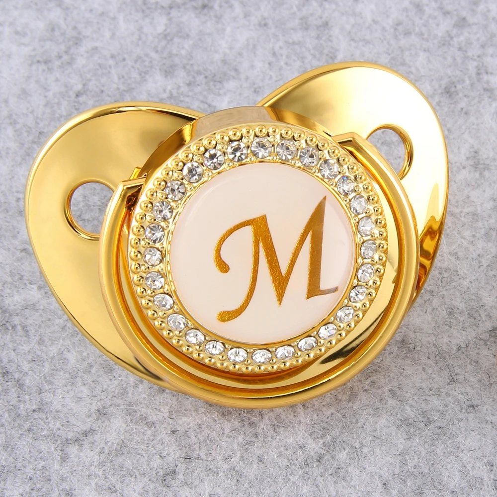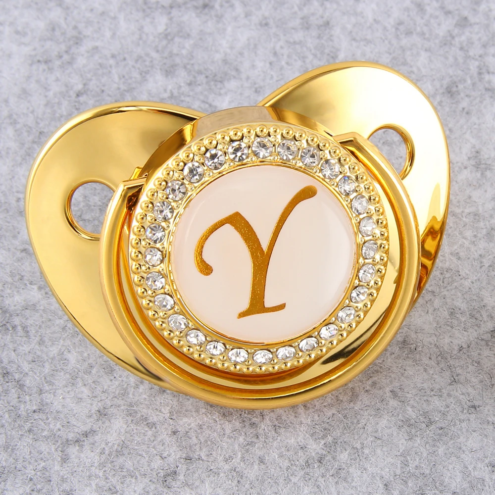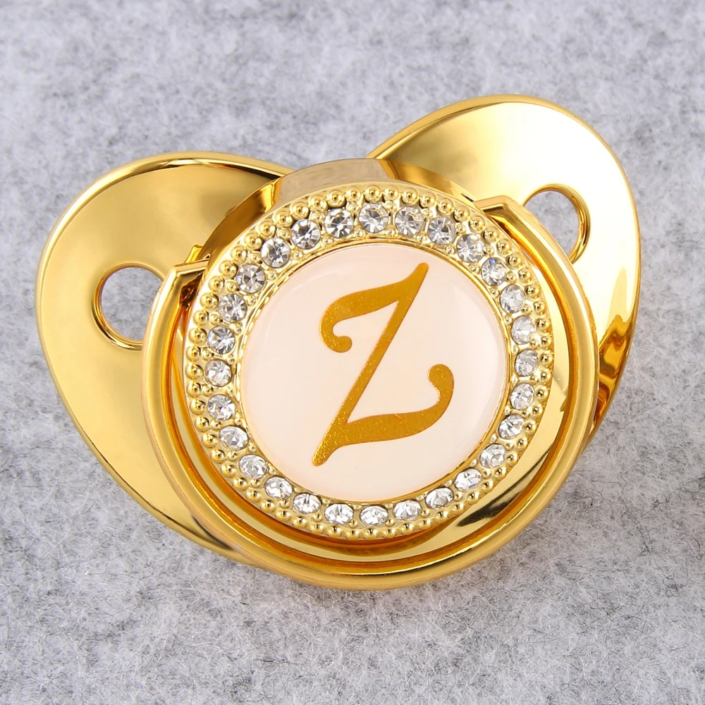 Стильный, с блеском золота соски-пустышки с Стразы 26 букв с гравир...