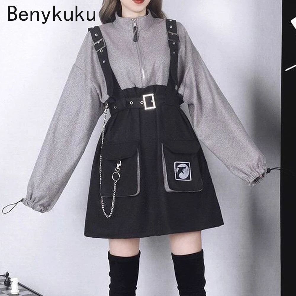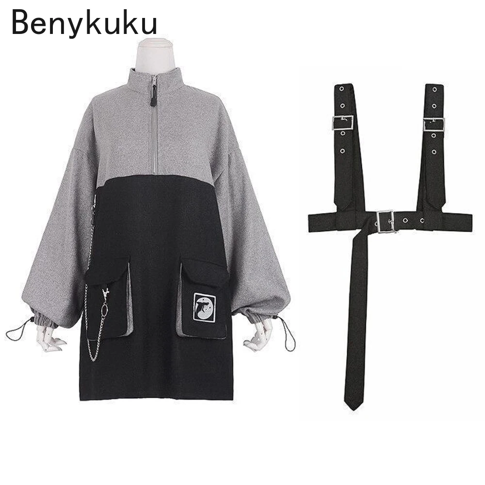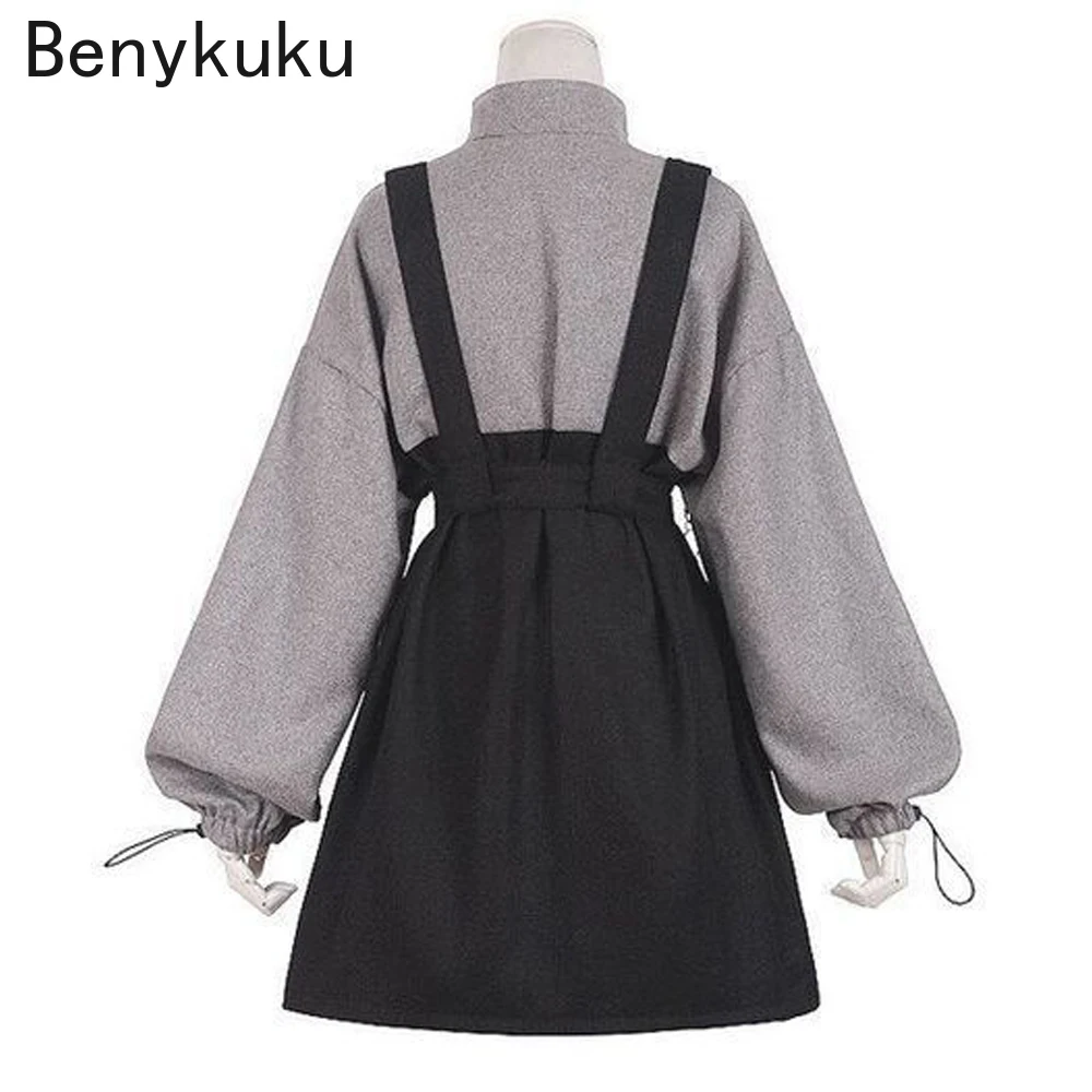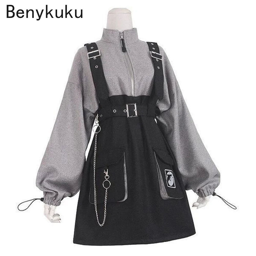 Готическое женское платье мини в стиле ретро, винтажное платье с длинным рукавом, воротником-шляпой, серого и черного цветов, 2021, Jurken, размера плюс