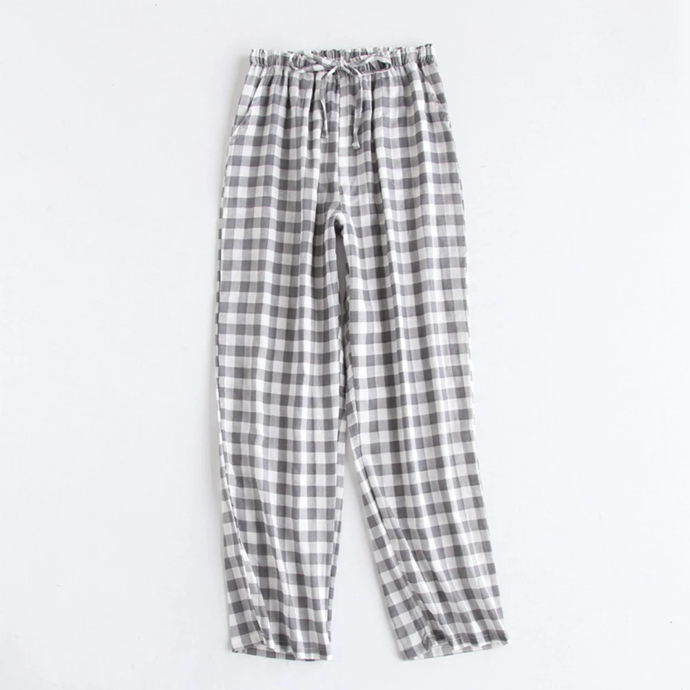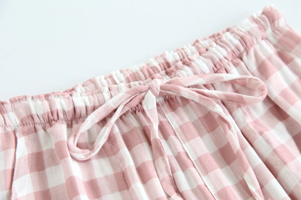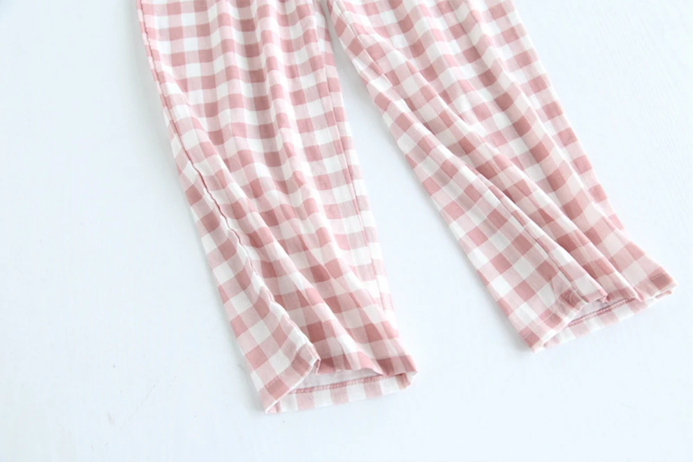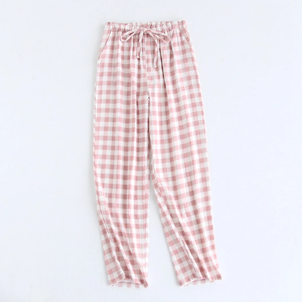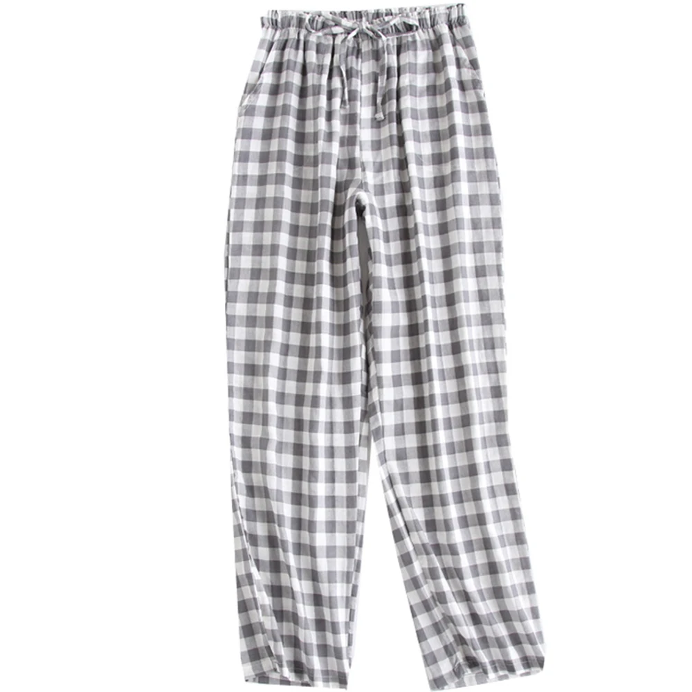 Пижама женская хлопковая домашние штаны, тонкие дышащие штаны для сна в клетку, ночные брюки для пар, удобные пижамы, на весну