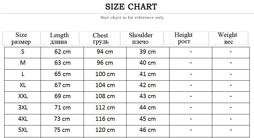1. Это китайский Размер, обычно на 2-3 размера меньше размера EU/US. Если вы носите Европейский/американский размер M, вы можете выбрать наш Размер XL или XXL.2. При измерении вручную допускается погрешность в 1-3 см (1 см = 0,39 дюйма).3. Разные компьютеры могут отображать разные цвета, даже если они одного цвета. Пожалуйста, учитывайте разумную разницу в цвете.4. Обычно мы отправляем ваш заказ в течение 3 дней после оплаты, если нет, пожалуйста, свяжитесь с нами, чтобы проверить проблему.