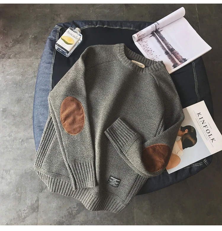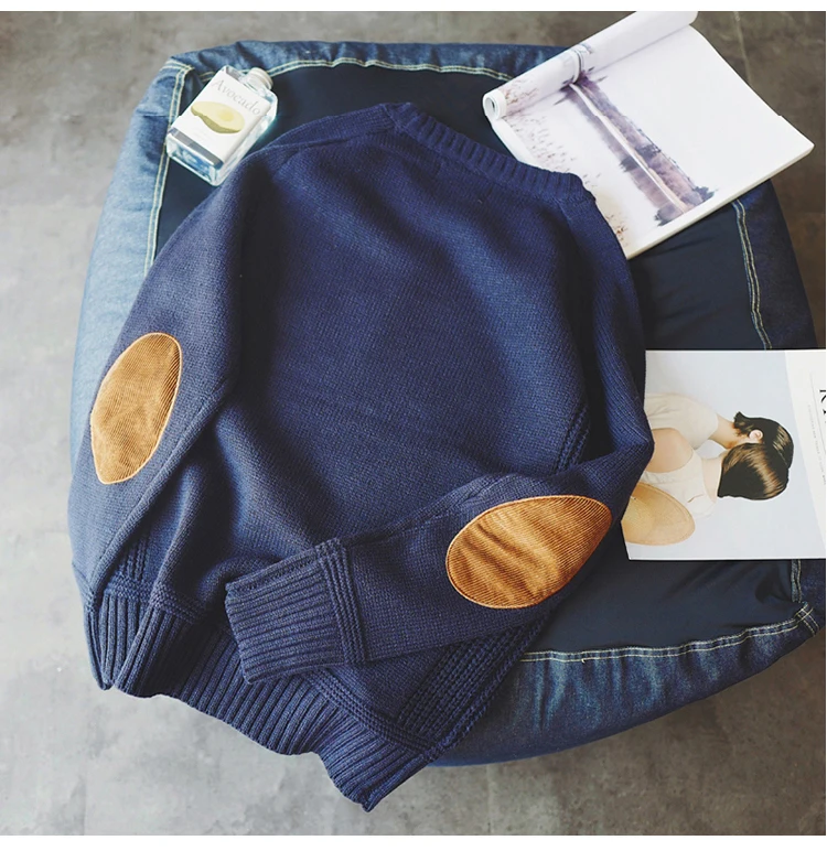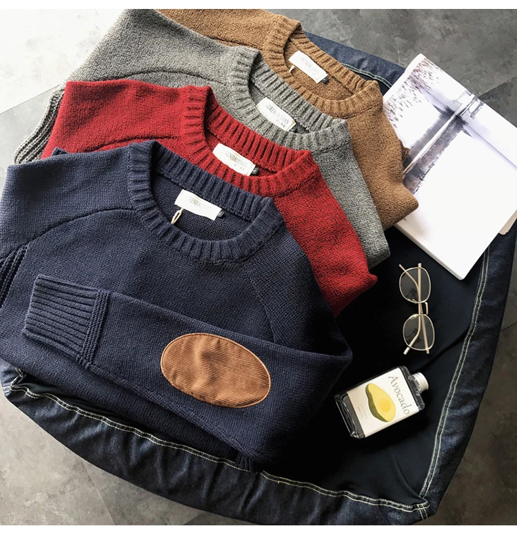 Пуловер мужской, в стиле колледжа, контрастный и уплотненный, с круглым вырезом, модный, плотный, шерстяной, трикотажный