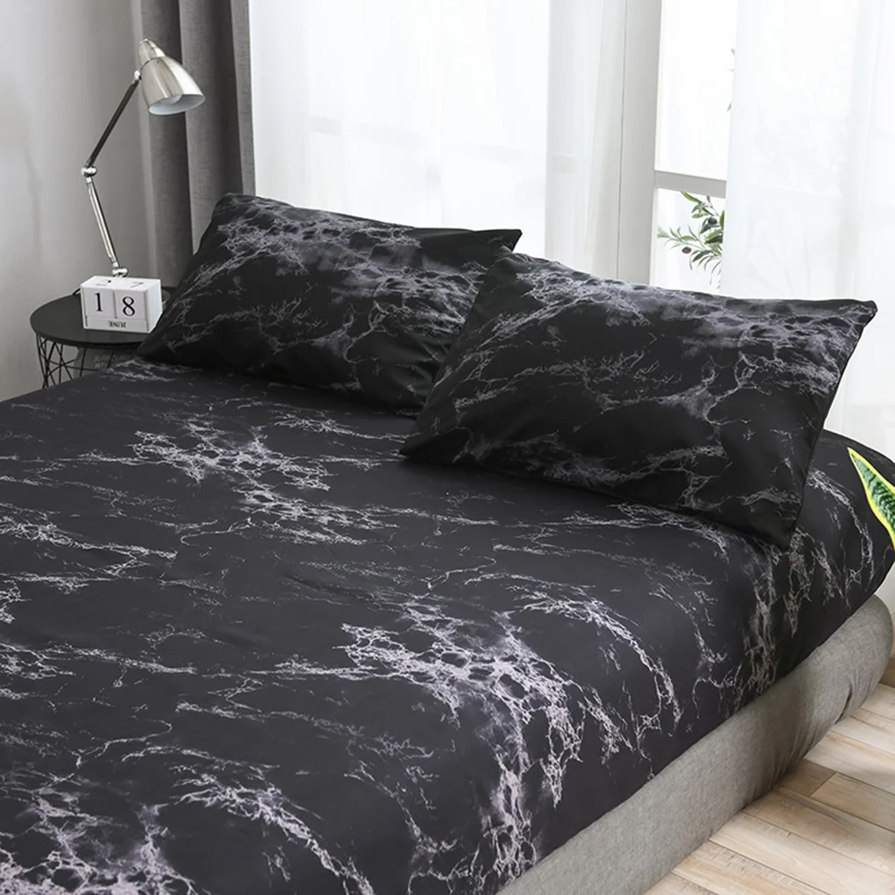 Постельное белье с мраморным рисунком, черное, белое, эластичная на...