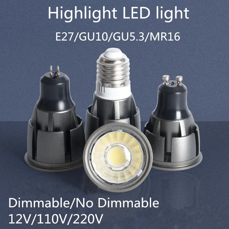 Сверхъяркий светодиодный прожектор, лампа GU10, Диммируемый светодиодный светильник, 12 В, 110 В, 220 В, 9 Вт, 12 Вт, 15 Вт, светодиодный светсветильник льник GU5.3GU10E27MR16 COB