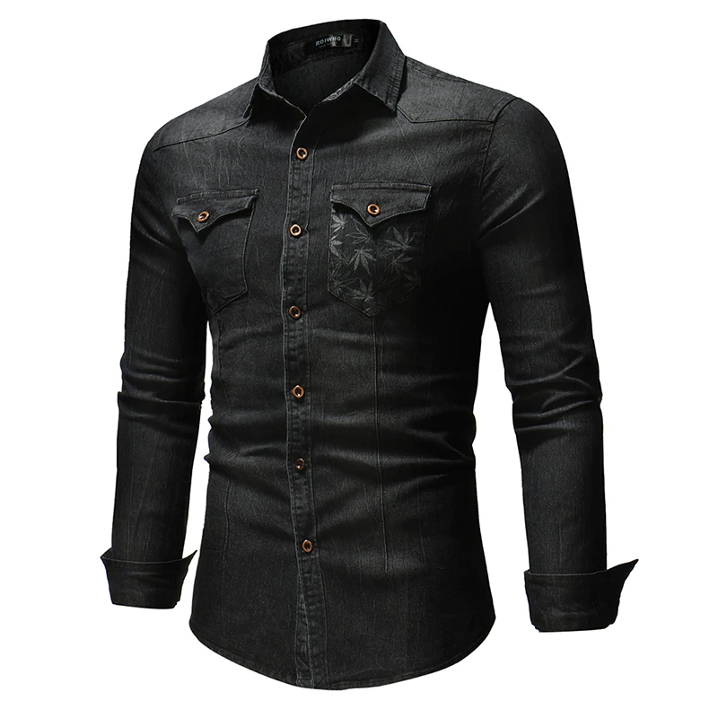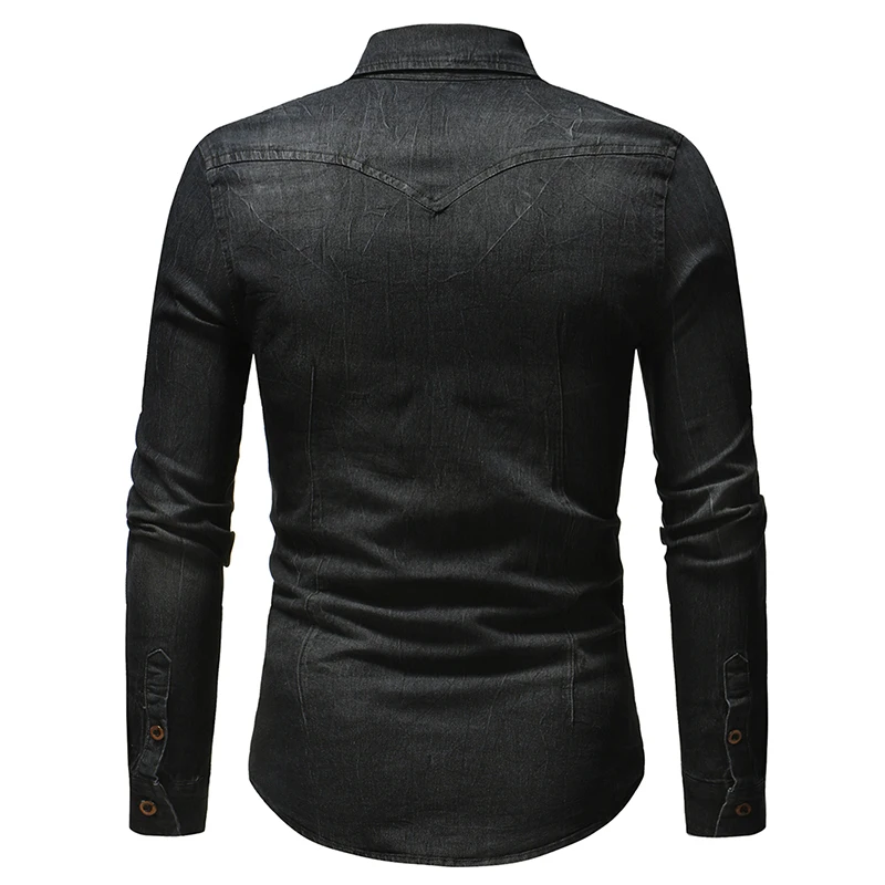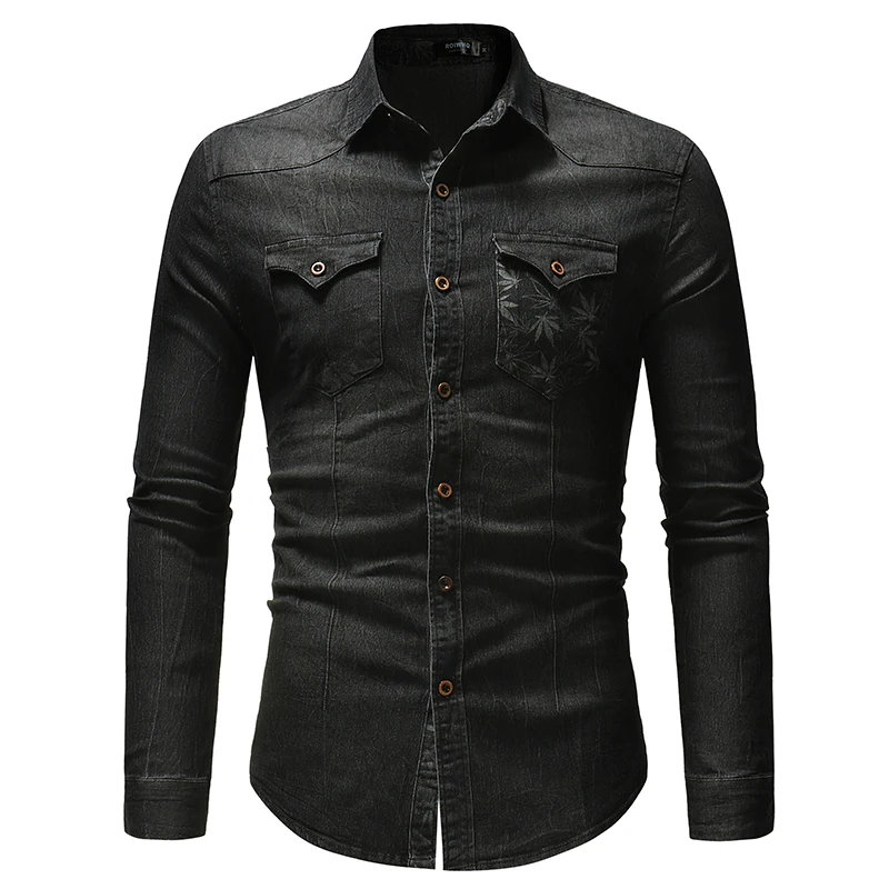 2021 весенне-осенние высококачественные куртки и пальто Джинсовая рубашка мужская повседневная футболка с длинным рукавом, облегающая, Приталенная модель карман цвет: черный, синий рубашка размера плюс 3XL