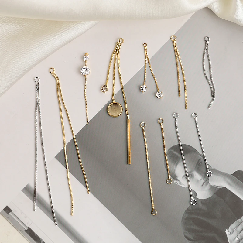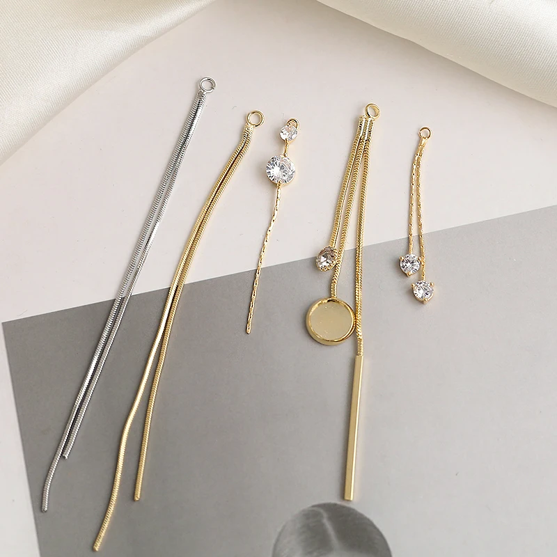 6 шт. медные новые длинные висячие серьги с кисточками для женщин, двойное кольцо, инкрустированное цирконием, хвостовая цепочка diy, ювелирные аксессуары